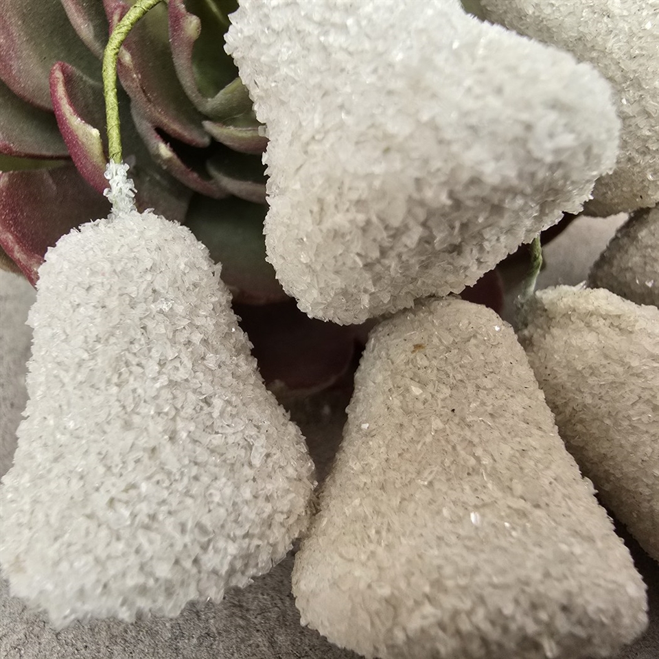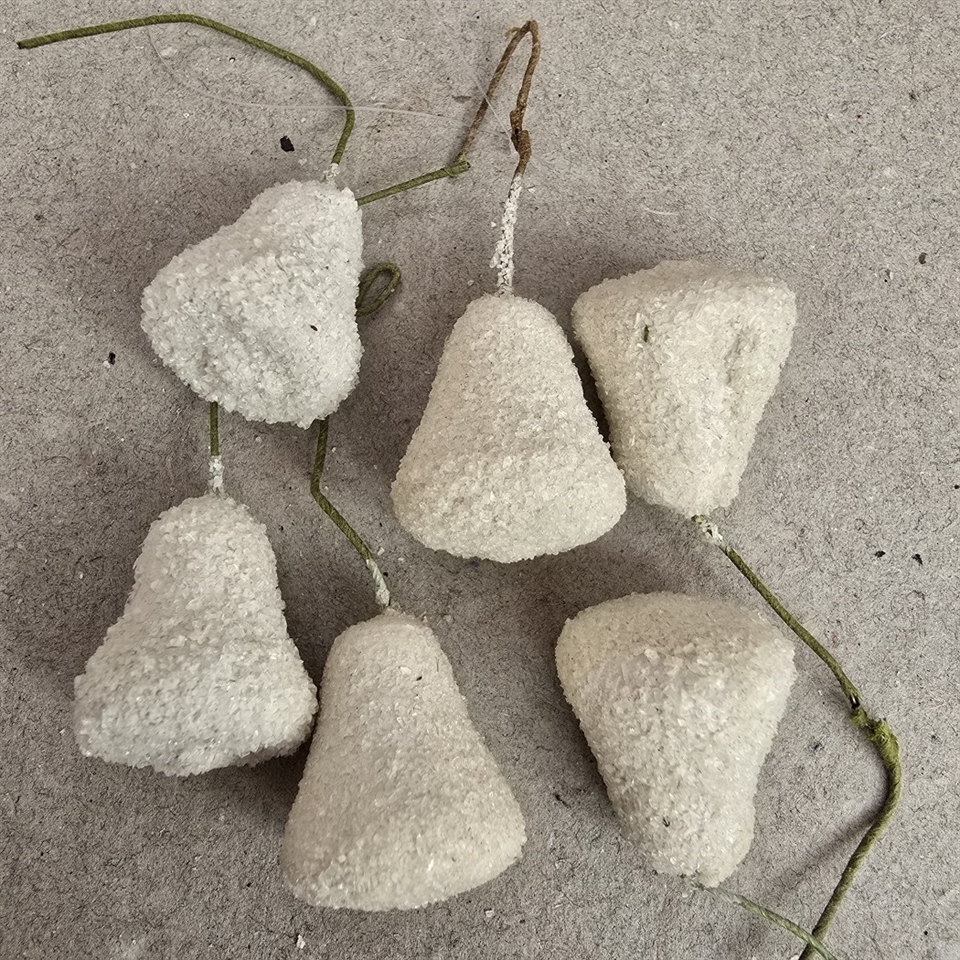 Opdag magien ved en traditionel jul med vores charmerende "Juleklokker i hvidt sukkerpynt på ståltråd"!