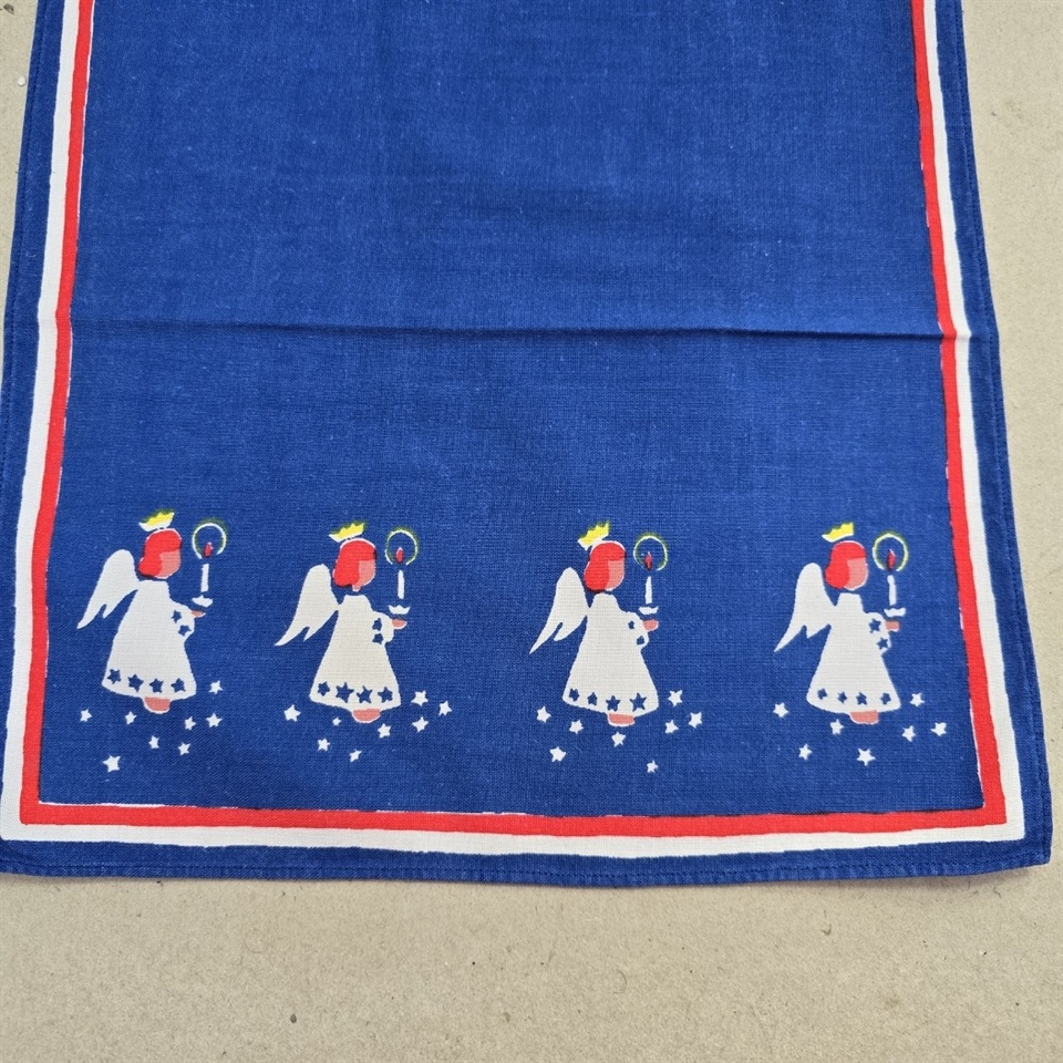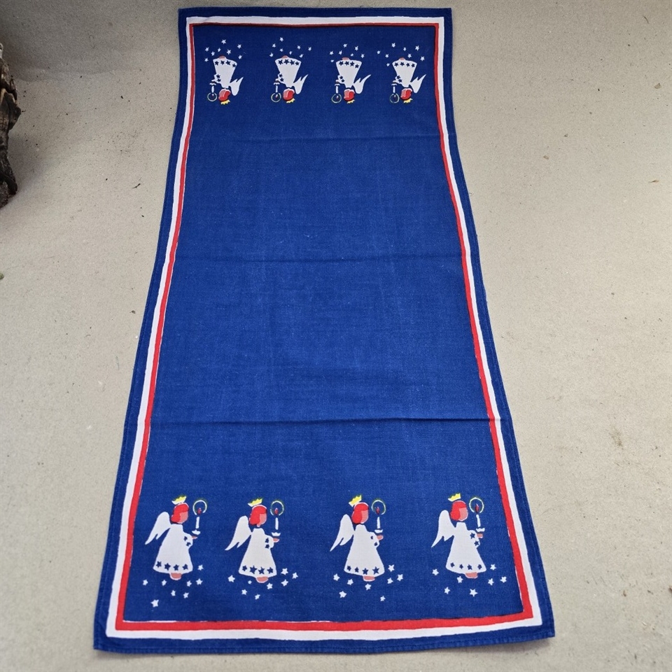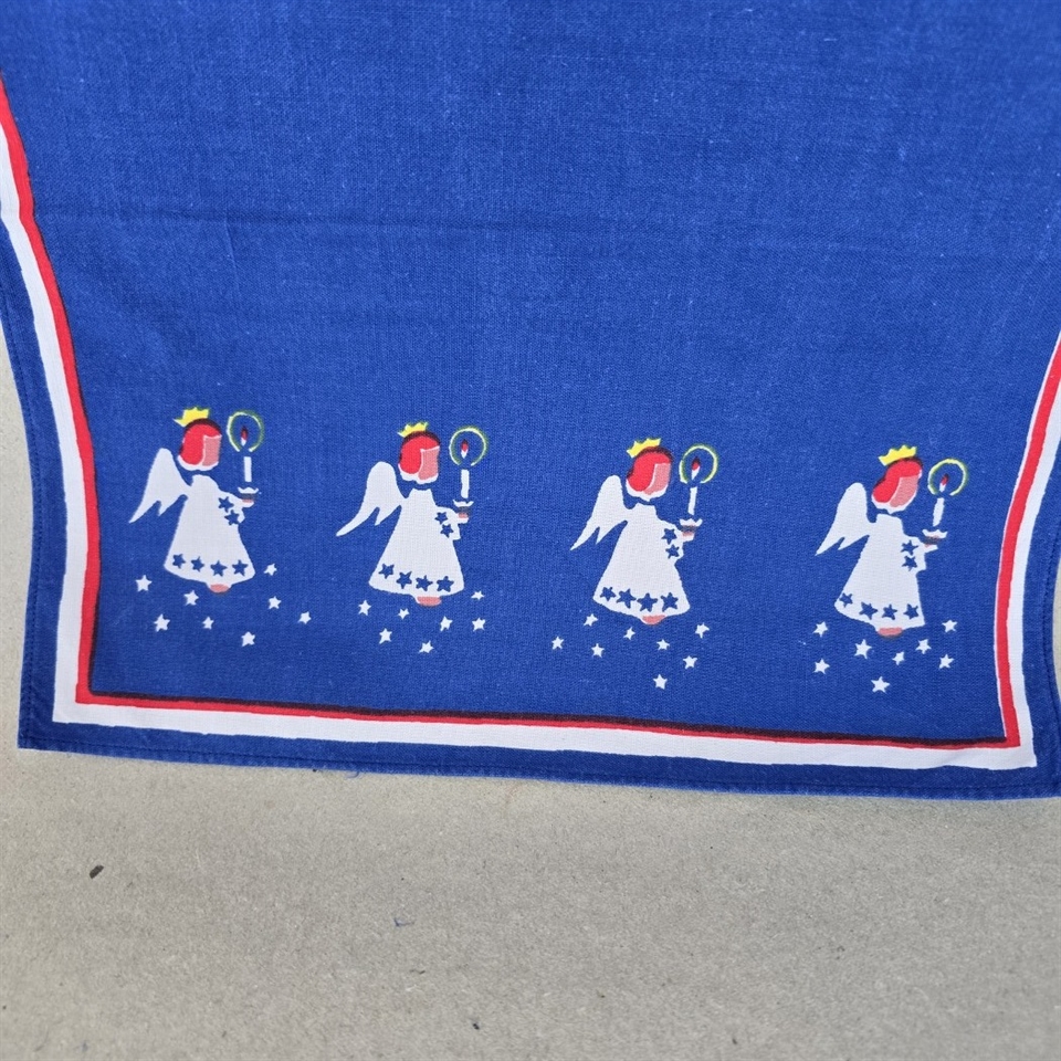 Vores 'Juleløber med engle til julebordet' er det perfekte retro tekstil, der vil bringe hygge og højtidsstemning til dine julefester. Denne smukke løber er designet i en dyb kongeblå farve, der elegant komplementeres af hvide engle i et legesygt print, som tilføjer en klassisk og tidløs æstetik til din borddækning.