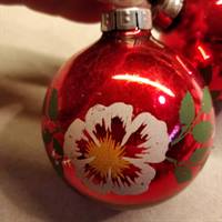 Rød, hvid, metal farvet spejl julekugle i glas, genbrug.