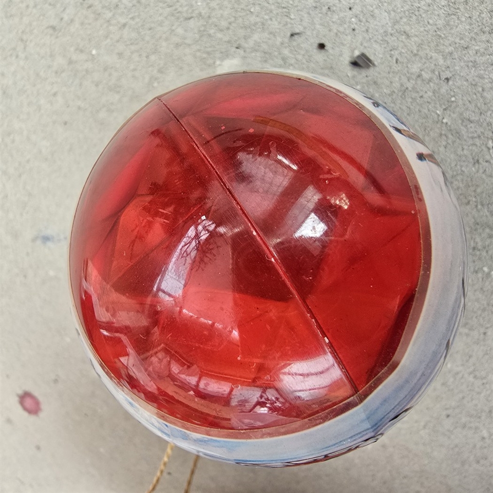 Gør din juletid ekstra speciel med denne charmerende retro plastik juletræskugle, og lad julestemningen sprede sig i hvert hjørne af dit hjem!