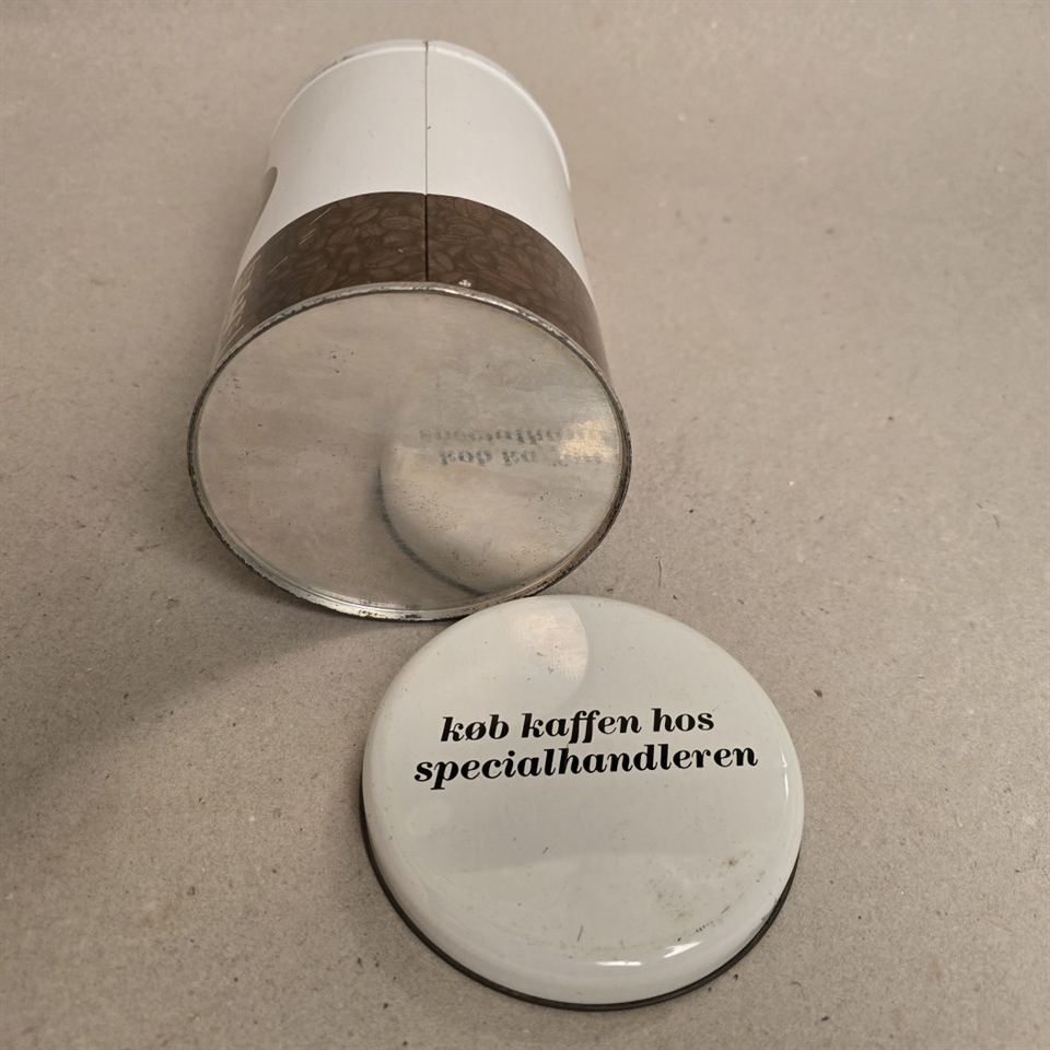 Ideel til både praktisk brug og som en dekorativ genstand, vil denne kaffedåse fra Handlernes Landsforening helt sikkert vække opmærksomhed og skabe samtale ved enhver kaffeslabberas.