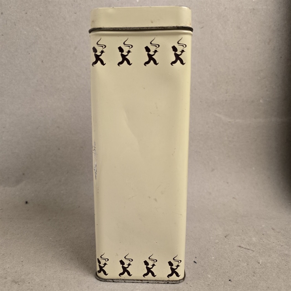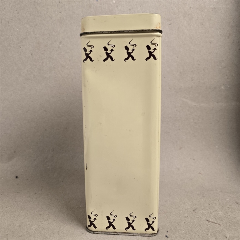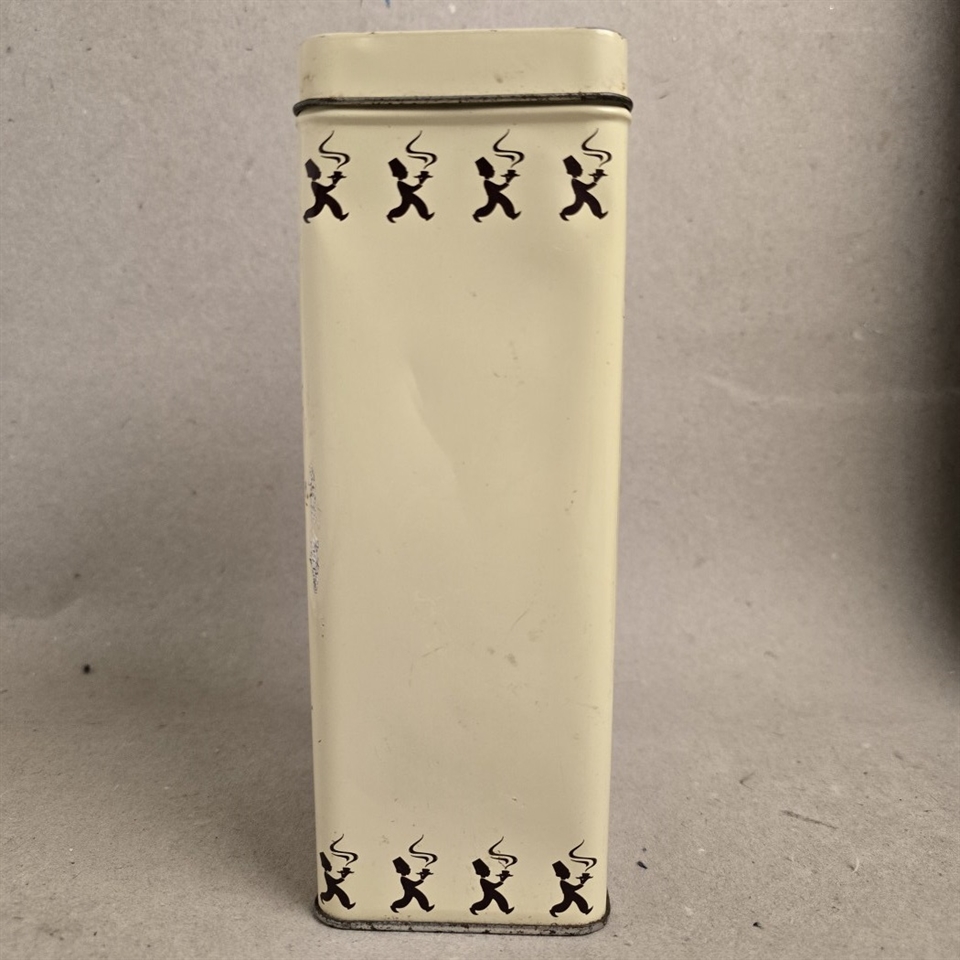 På forsiden pryder en smuk, brunfarvet illustration af en arabisk mand, der byder på en kop kaffe, hvilket tilføjer en ekstra dimension af verdenskultur og historie til denne kaffedåse.