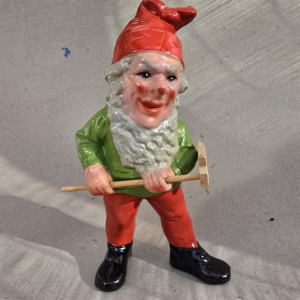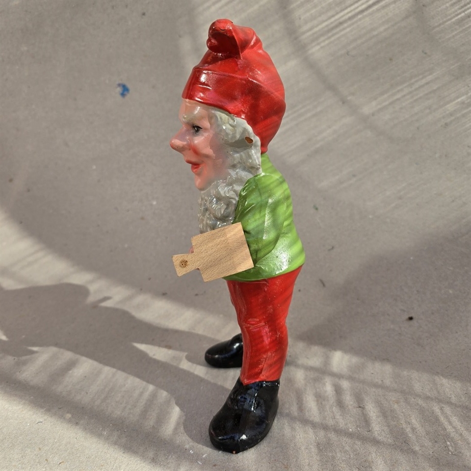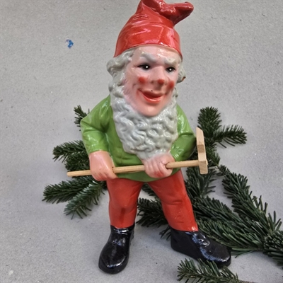 Denne unikke nisse holder en lille træhakke, klar til at hjælpe til med juleforberedelserne i det skjulte.