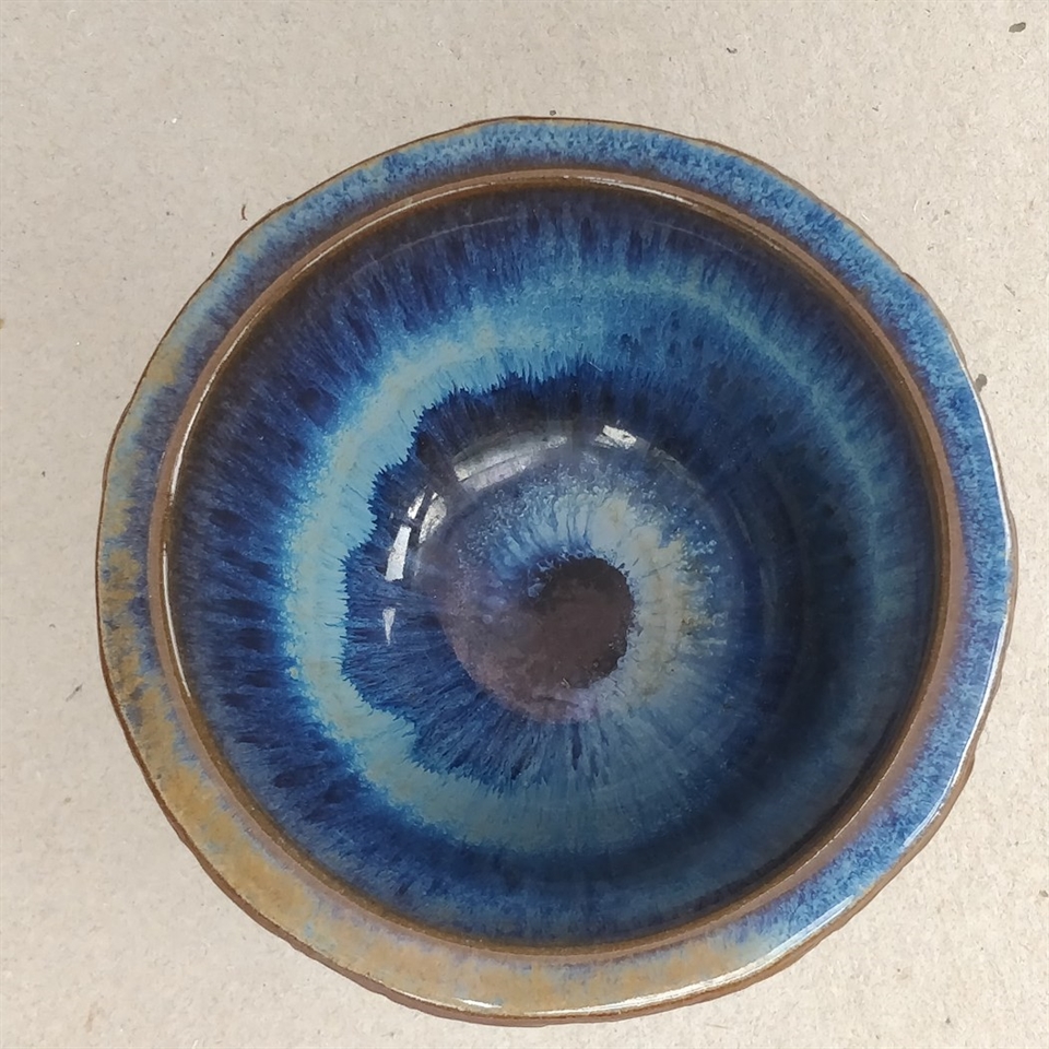 Indvendigt er skålen belagt med en smuk blå glasering, der ikke alene skaber en iøjnefaldende kontrast, men også garanterer en glat og hygiejnisk overflade.