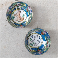 Opdag den fine elegance og detaljerige design i vores 'Kinesiske miniskåle, hund-ged, tyndt porcelæn. 2 stk.'