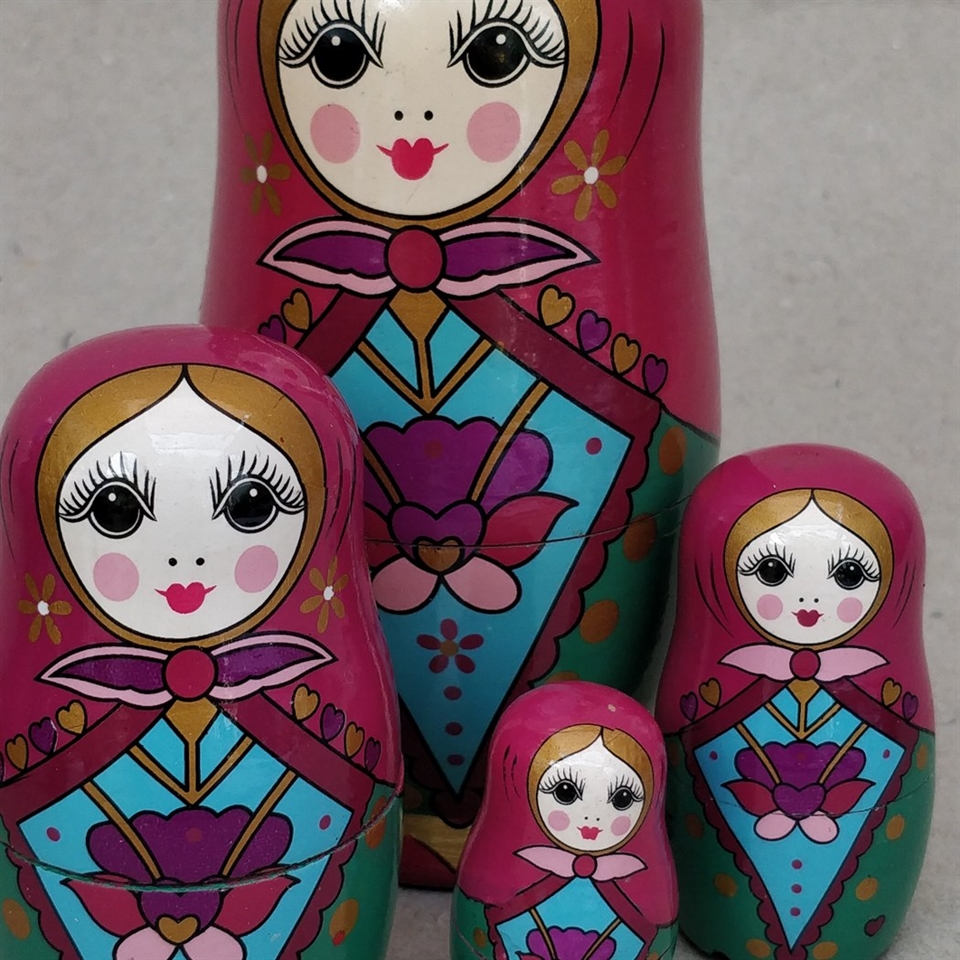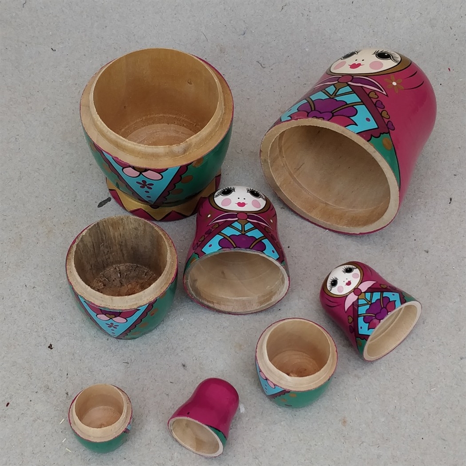 Vores babushka-dukker er nøje udskåret i træ og designet til at kunne sættes inden i hinanden, hvilket giver både en funktionel og dekorativ anvendelse.