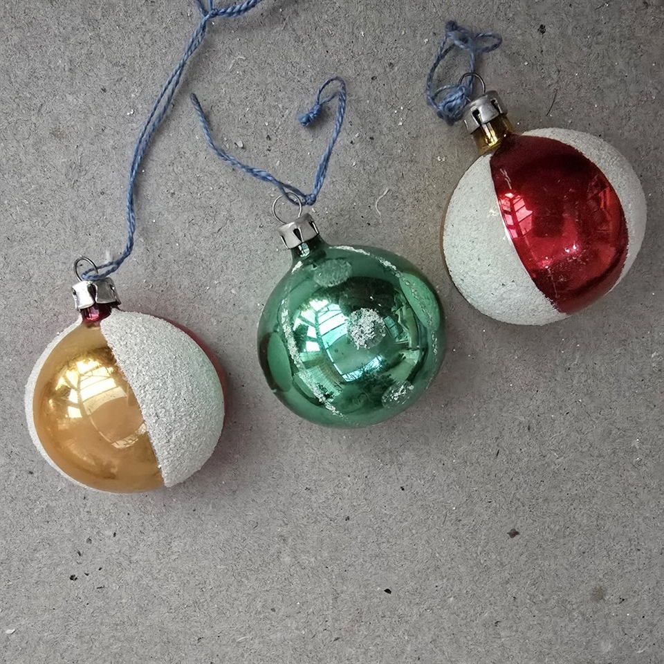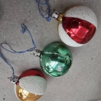 Dette charmerende sæt består af tre håndblæste glaskugler, hver omhyggeligt dekoreret med funklende snestriber og spejlreflektorer, der fanger og spreder lyset med et fortryllende skær. Med en klassisk palet af guld, rød og grøn tilføjer disse julekugler et strejf af nostalgisk glæde til dit juletræ.