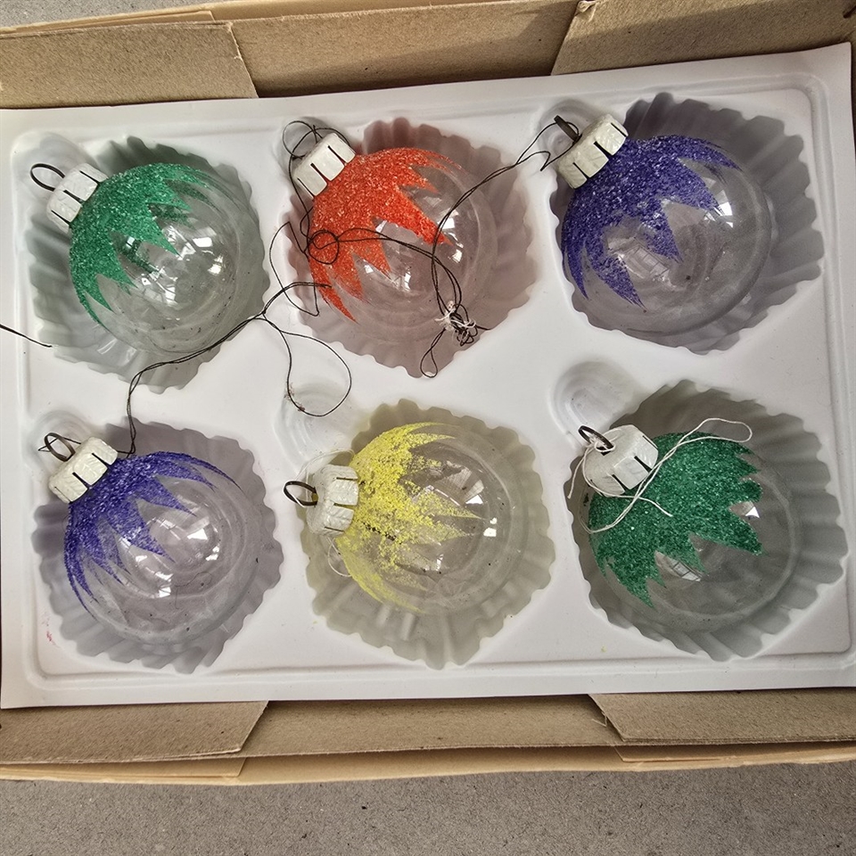 Lad disse charmerende klare vintage glas juletræskugler med farvet sukker is bringe varme, glæde og en smule gammeldags glamour til din julefest.
