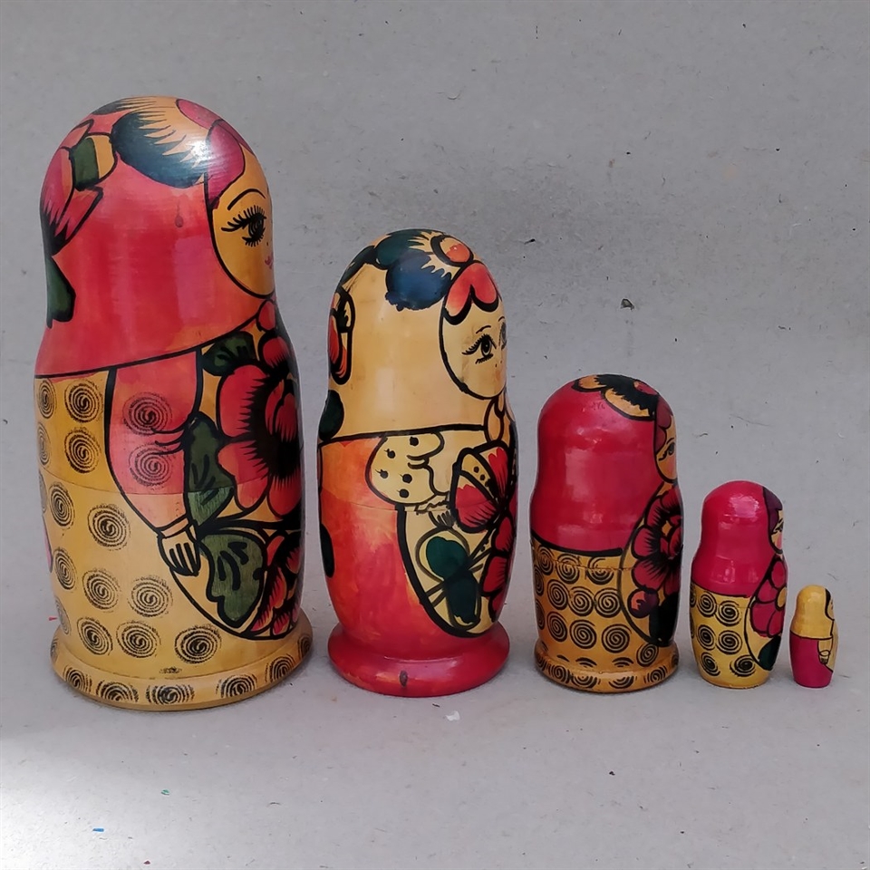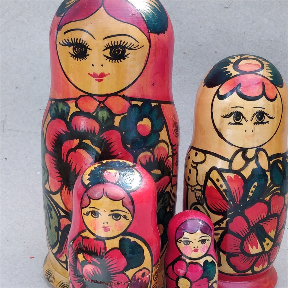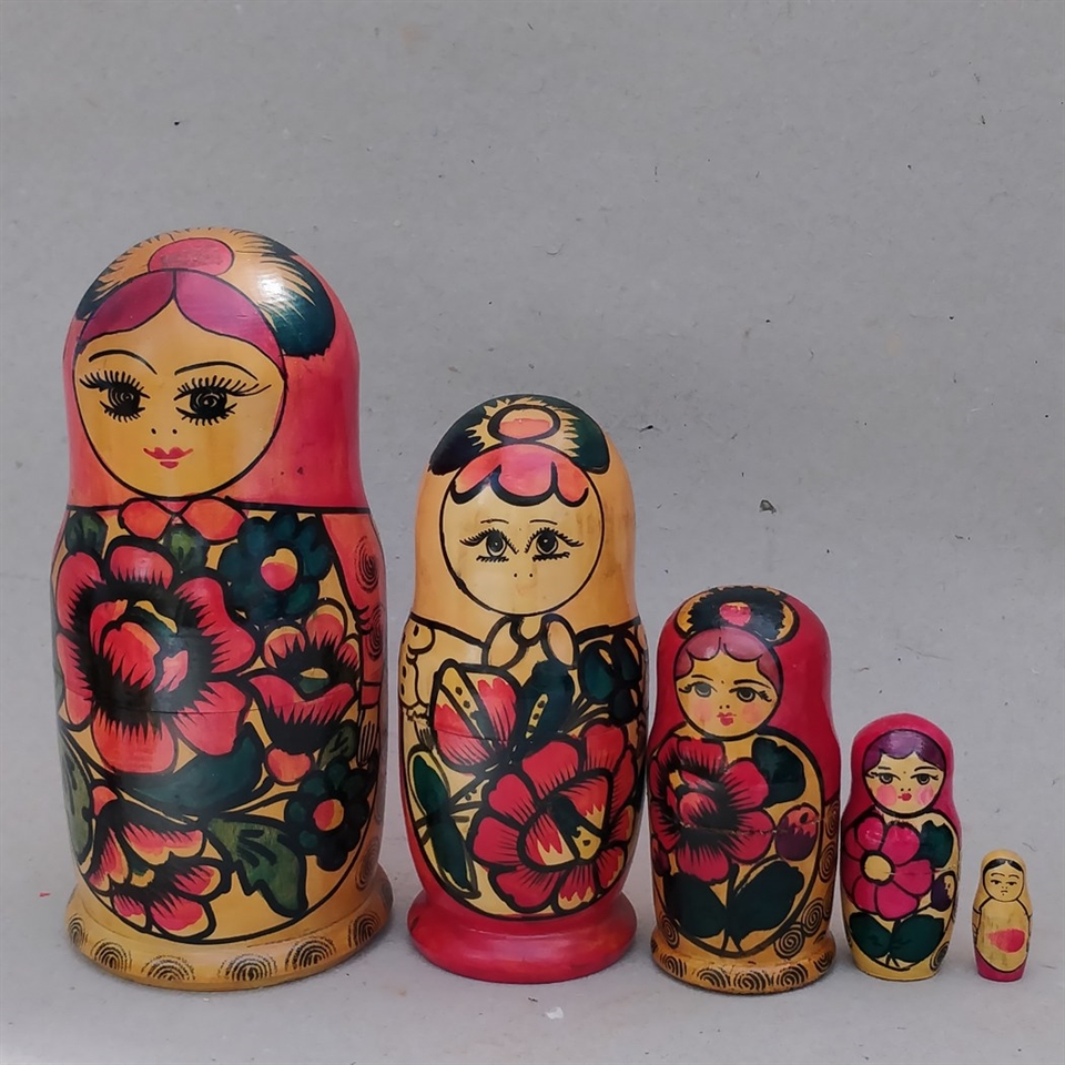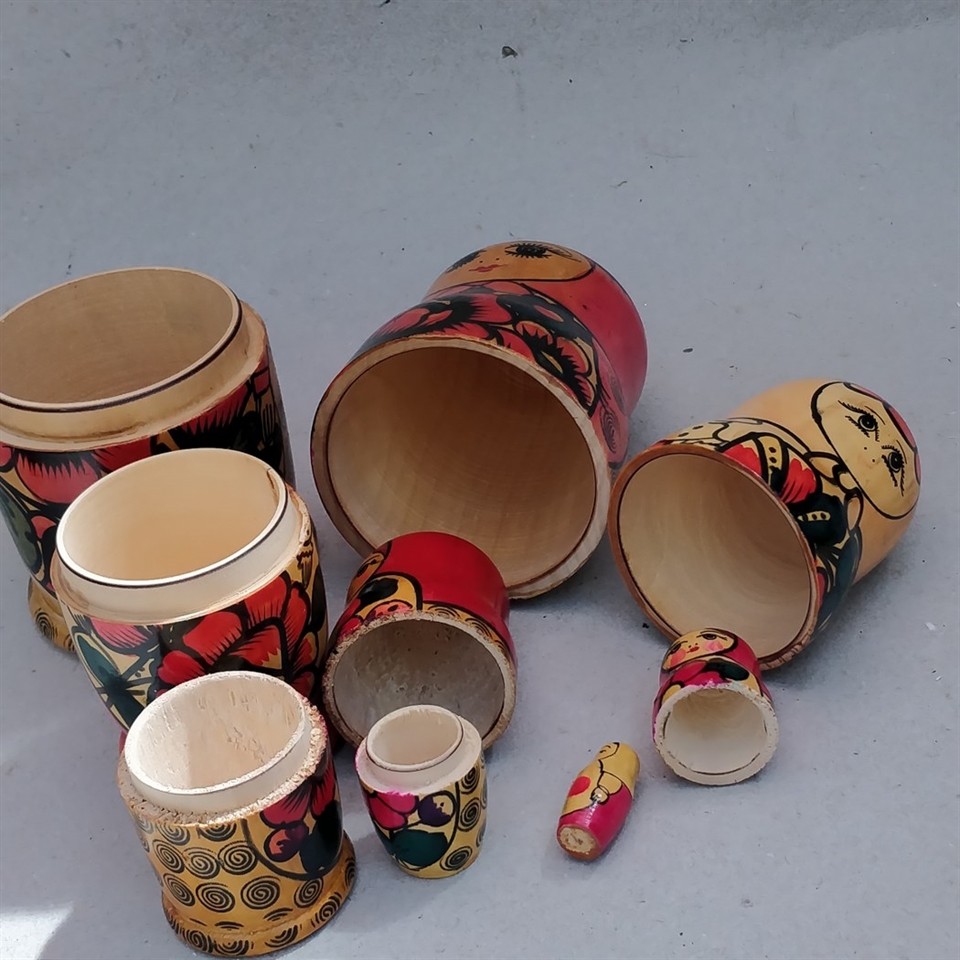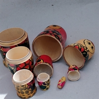 Fra den mindste dukke på kun 3,5 cm. til den største på 20,7 cm., er hver enkelt dukke omhyggeligt udskåret i træ og dekoreret med gammeldags finesse, der fanger essensen af russisk folklore.