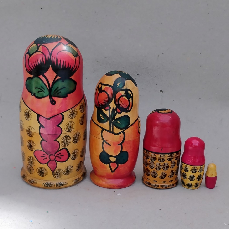 Opdag charmen fra det gamle Rusland med vores 'Klassisk Dekorerede Gamle Babushka Trædukker'. Dette sæt indeholder fem håndmalede babushka-dukker, hver med sit unikke, glade farvespil, der bringer et strejf af traditionel russisk kunst direkte til dit hjem.