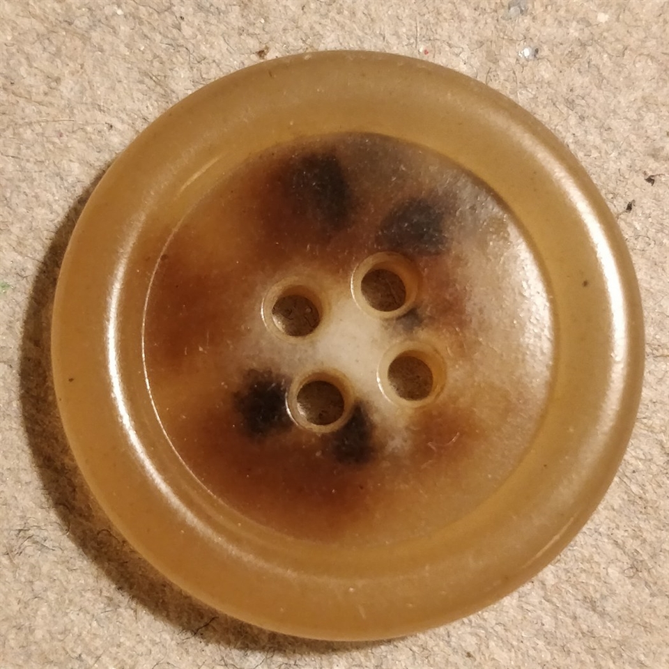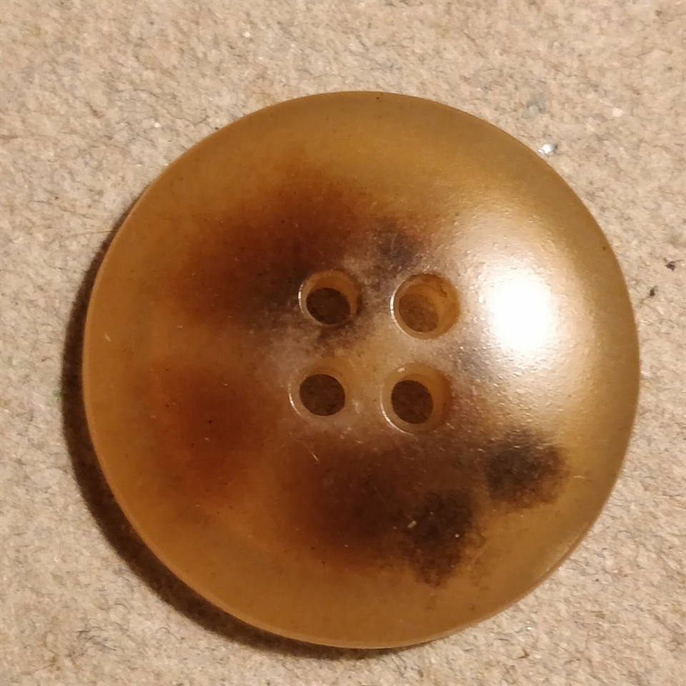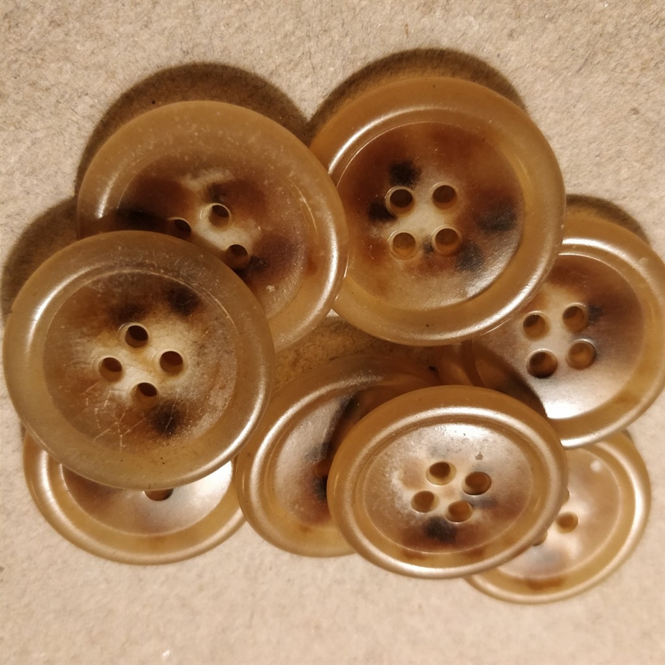 Disse knapper er fremstillet i brun og beige plastik og har et tidløst rundt design, der tilføjer et strejf af retro elegance til enhver frakke eller jakke.