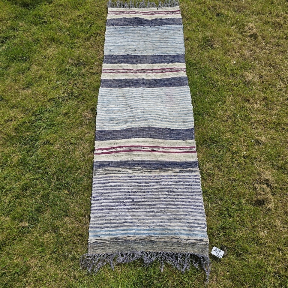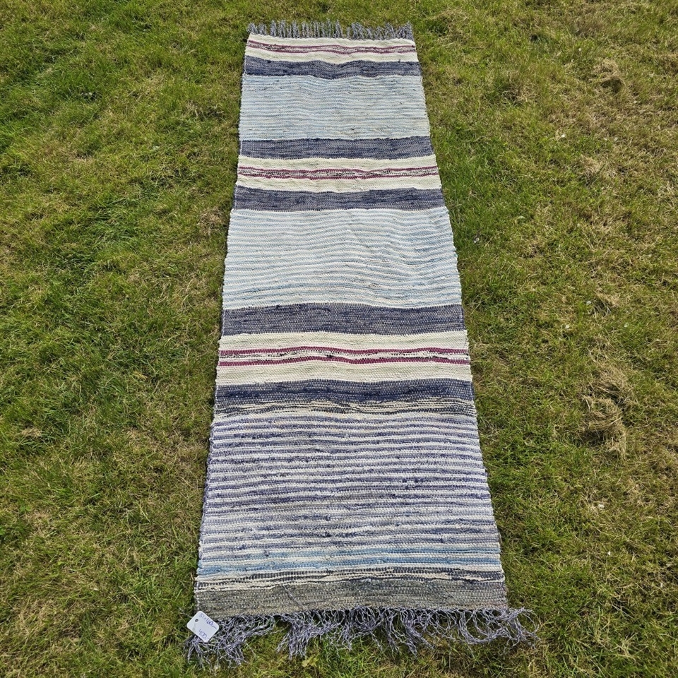 Placer 'Klassisk gammelt svensk kludetæppe i striber' i din stue, soveværelse, eller brug det som en elegant løber i din entré.