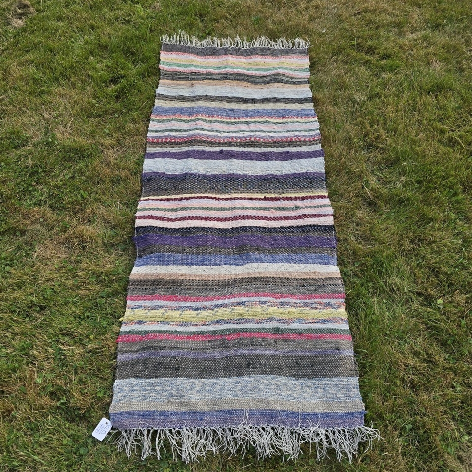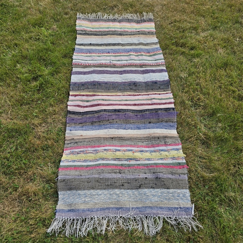 Opdag charmen og varmen i vores "Klassisk stribet svensk kludetæppe" i blandede farver, der måler 60x146 cm. Dette smukt vævede tæppe bringer en hyggelig og autentisk atmosfære ind i ethvert rum, og dets rige historie og traditionelle skandinaviske design vil uden tvivl tilføje karakter og stil til dit hjem.
