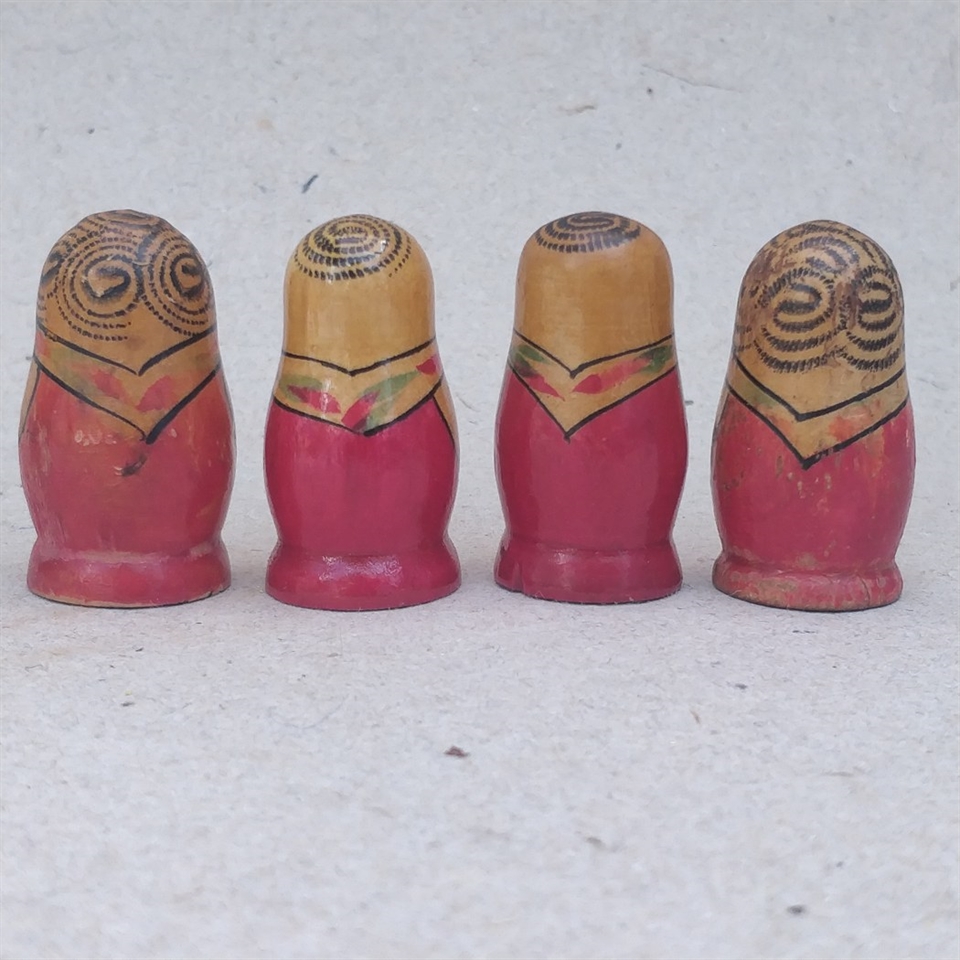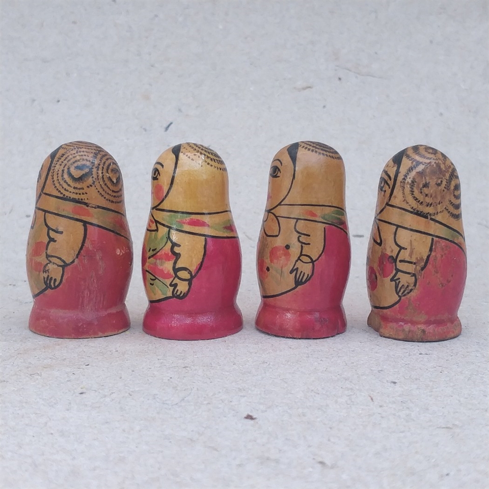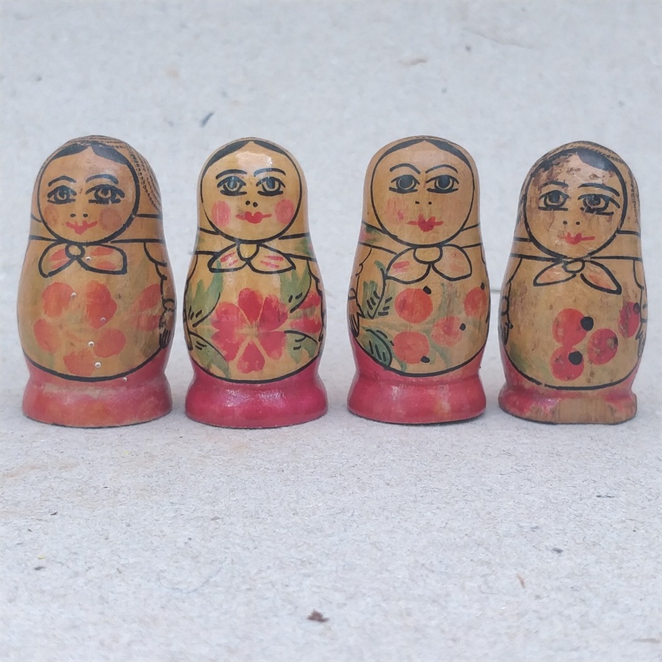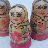Hver dukke måler 4,3 cm. i højden og er perfekt proportioneret til at gemme sig indeni hinanden. De er ideelle til at udsmykke enhver hylde eller som en unik gave til en nær ven, der værdsætter traditionelt håndværk og kunst. Selvom den ene dukke har et lille afslag på en fod, tilføjer det blot et strejf af karakter og historie til dette særlige sæt.