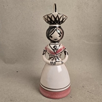 Opdag den charmerende 'Klokkedame med kurv på hoved' fra Lars Syberg Keramik, en unik og kunstnerisk tilføjelse til enhver keramiksamling!