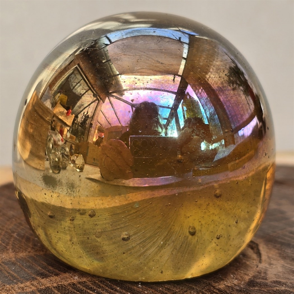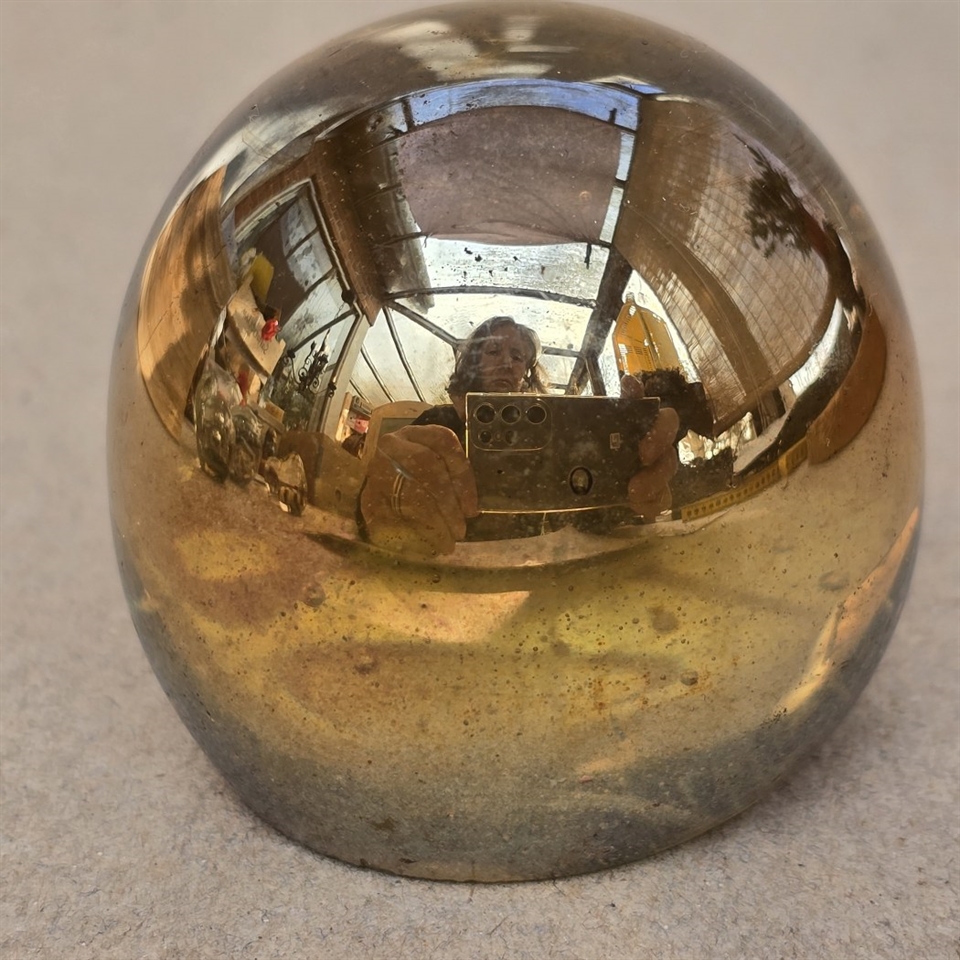 Forestil dig en smuk, kobberfarvet glaskugle, der glimter i sollyset, mens den holder styr på dine vigtigste papirer. Med en diameter på 5 cm. passer den perfekt på ethvert skrivebord uden at tage for meget plads. Den er ikke kun praktisk, men også en sand dekoration!