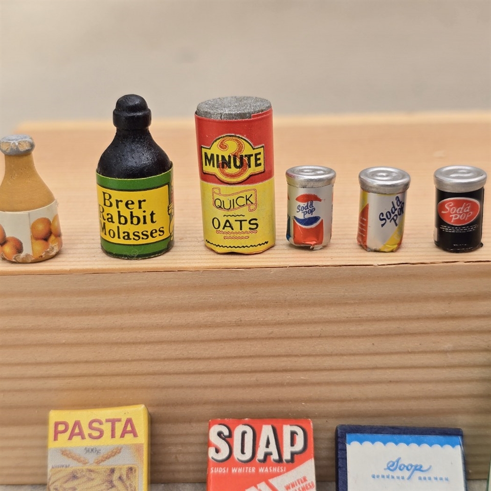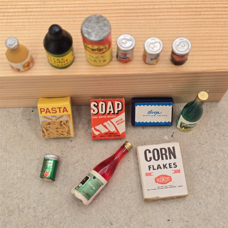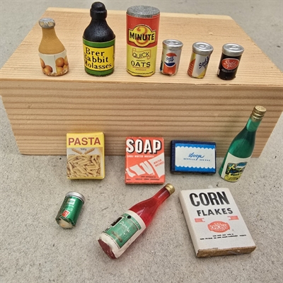 I dette farverige sæt finder du 13 forskellige gamle miniaturer, der hver bringer deres egen unikke historie. Fra den lille flaske på 3,5 cm. i højden til nostalgiske emner som pasta, sæbe, sodavandsdåser og cornflakes - hvert stykke er detaljeret og autentisk. Disse miniature købmandsvarer er ikke kun smukt udførte, men også en fantastisk måde at fange børn og voksnes fantasi på.