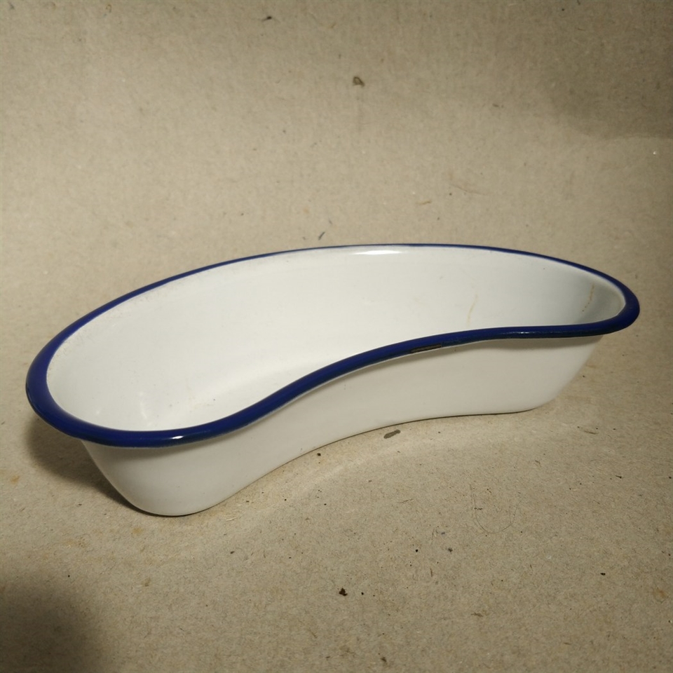 Investér i 'Kokums emaljeret bananformet fad, gammel hvid med blå kant' i dag og nyd en blanding af funktionalitet og æstetik, der vil berige din boligindretning.