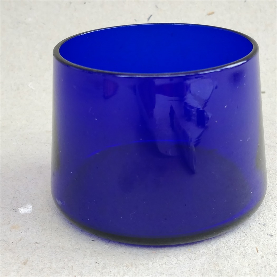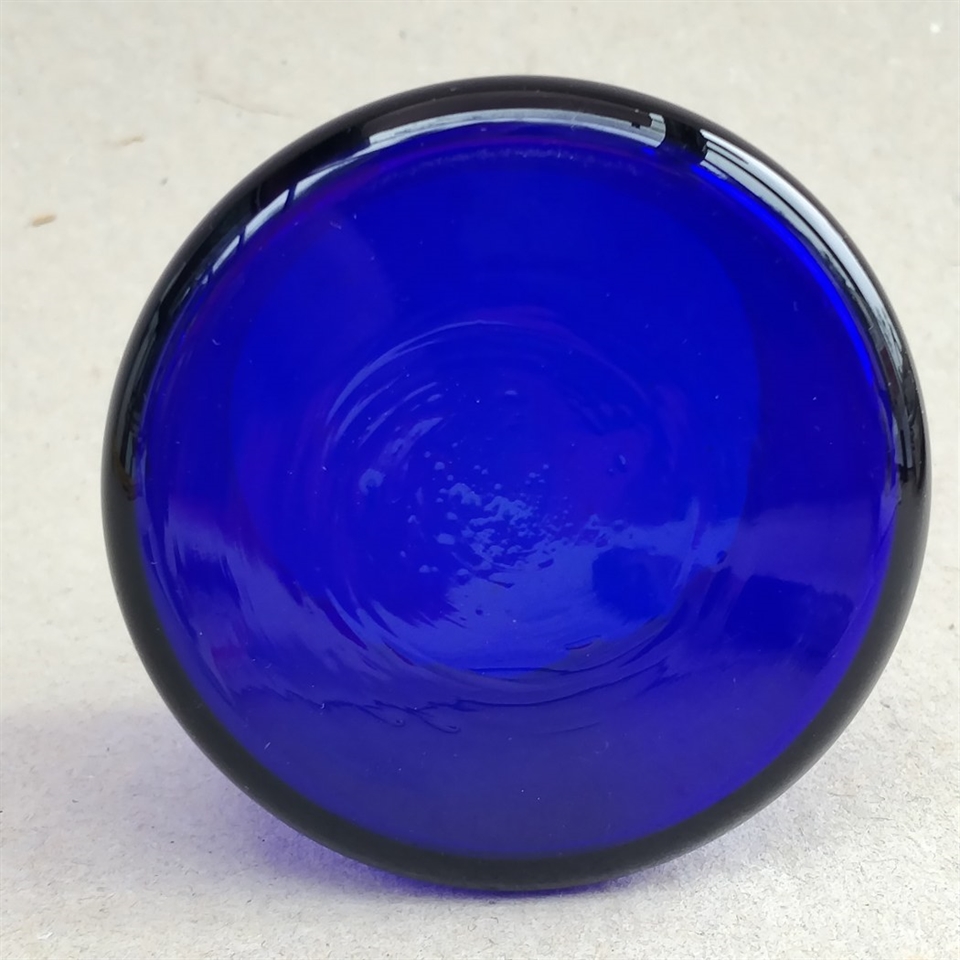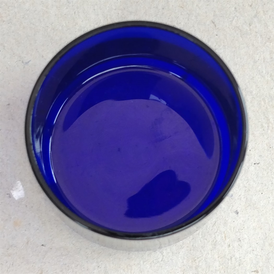 Denne charmerende lille skål er fremstillet i en smuk kongeblå farve, der tilfører et strejf af retro æstetik til enhver indretning.