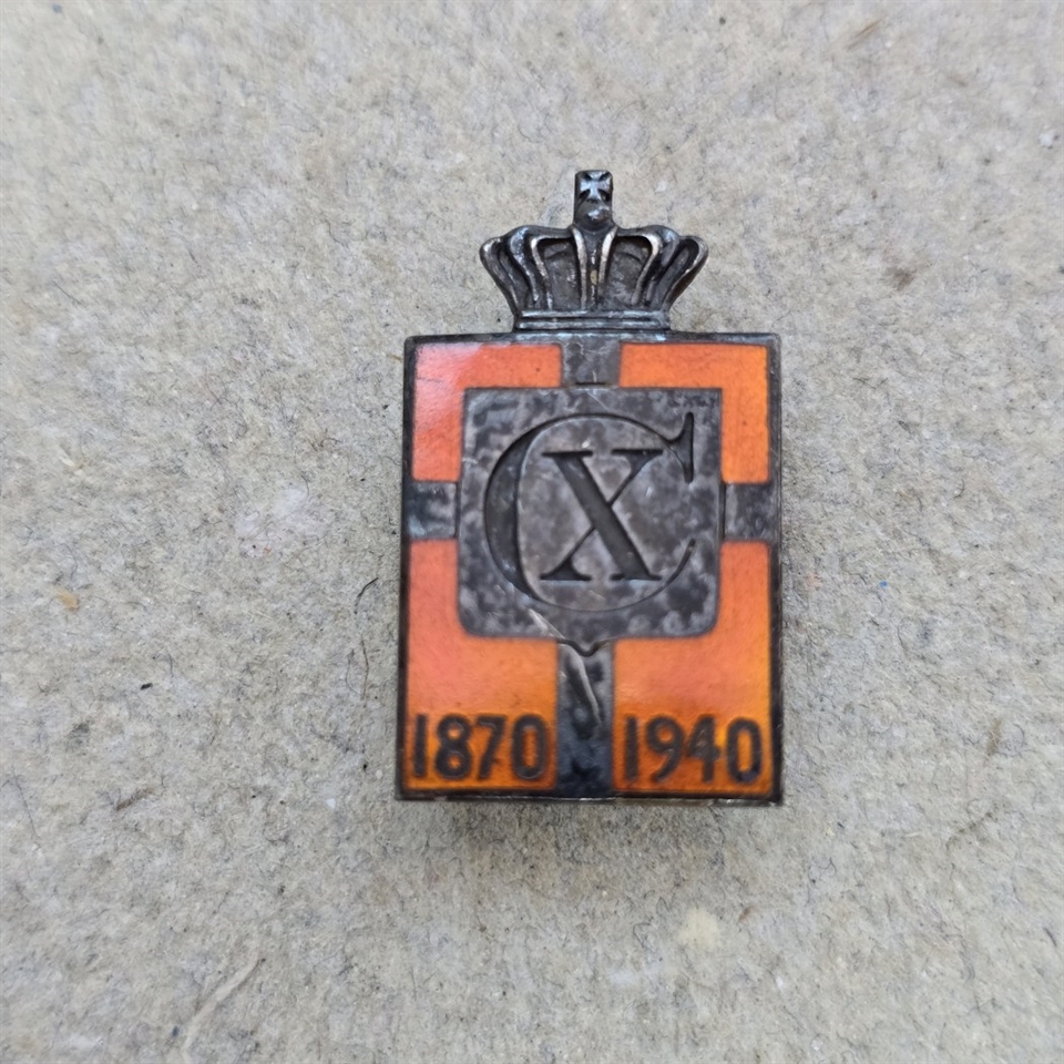 Dette fortryllende emblem er en hyldest til regeringstiden af Kong Christian X, fremstillet i en tid, hvor ægte håndværk var i højsædet.