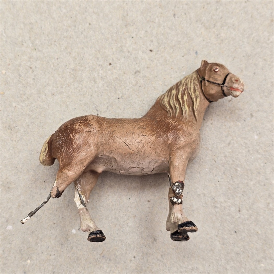 Opdag charmen fra fortiden med vores 'Kraftig Lysebrun Arbejdshest' – et autentisk stykke historisk legetøj, der vil tage dig tilbage til 1930'erne med sin vintage allure. Denne arbejdshest er ikke bare et legetøj; det er et stykke historie med en rig patineret finish, der fortæller sin egen unikke historie.