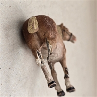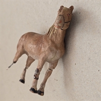 Højden på 10 cm. gør denne robuste arbejdshest til den perfekte størrelse for at pynte ethvert skrivebord, hylde eller børneværelse. Den lysebrune farve og den tydelige patina giver den et karakterfuldt og indbydende udseende, som både børn og voksne vil værdsætte.