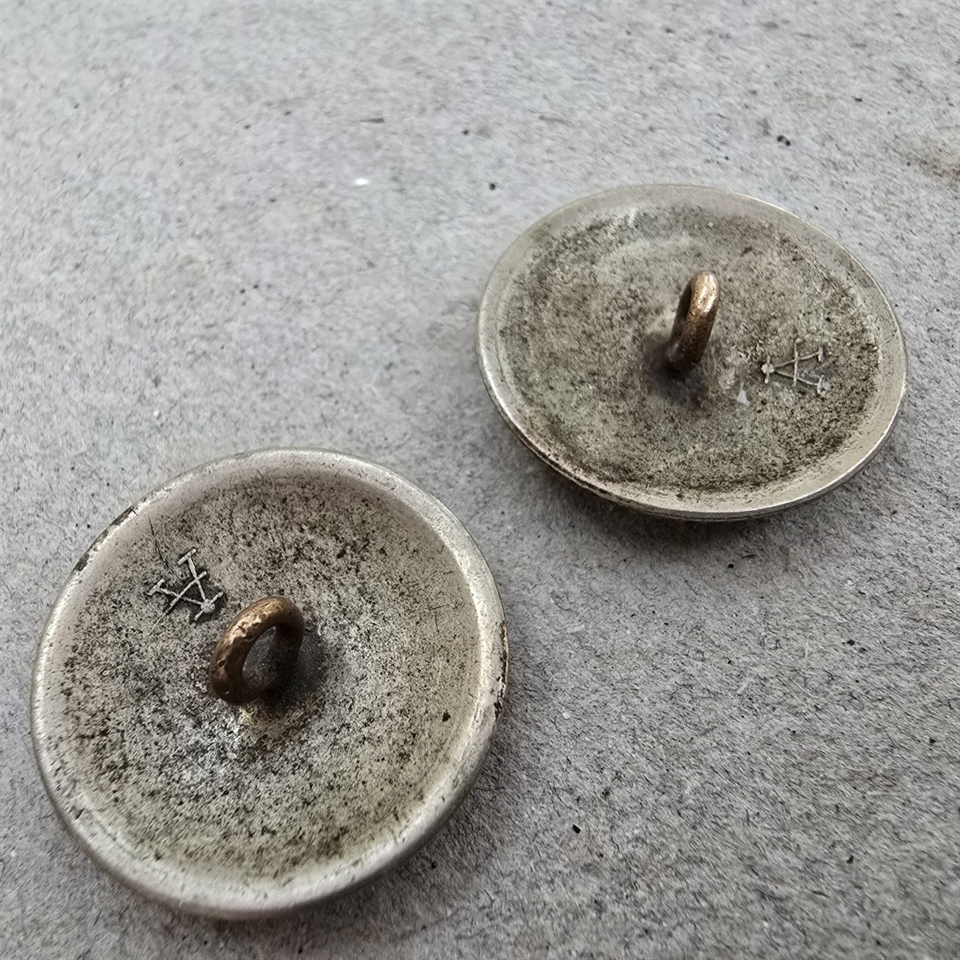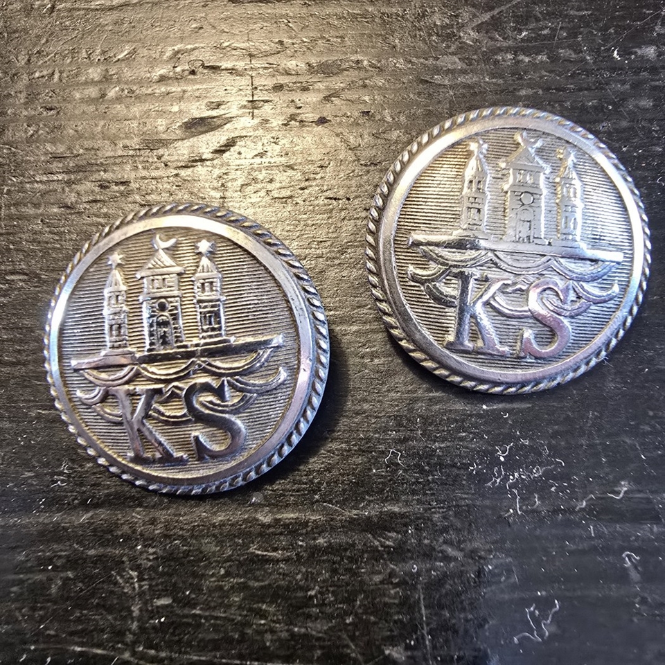 De er ideelle til at forvandle en almindelig jakke, frakke eller sweater til et mesterværk af modekunst. KS's gamle sølvfarvede metalknapper er ikke kun knapper; de er små kunstværker, der inviterer historiens vingesus ind i din garderobe.