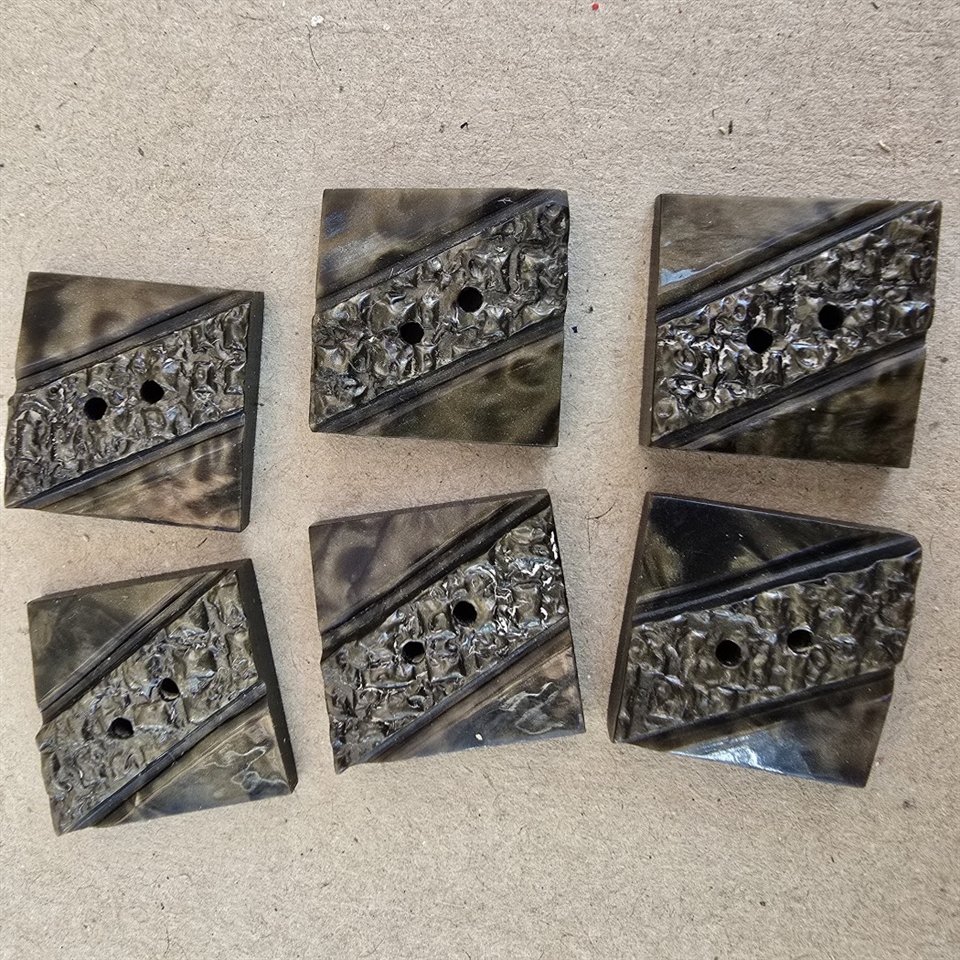 Disse unikke knapper er præget med et fint mønster, der tilføjer en dybde og karakter til ethvert stykke tøj eller håndarbejdsprojekt.