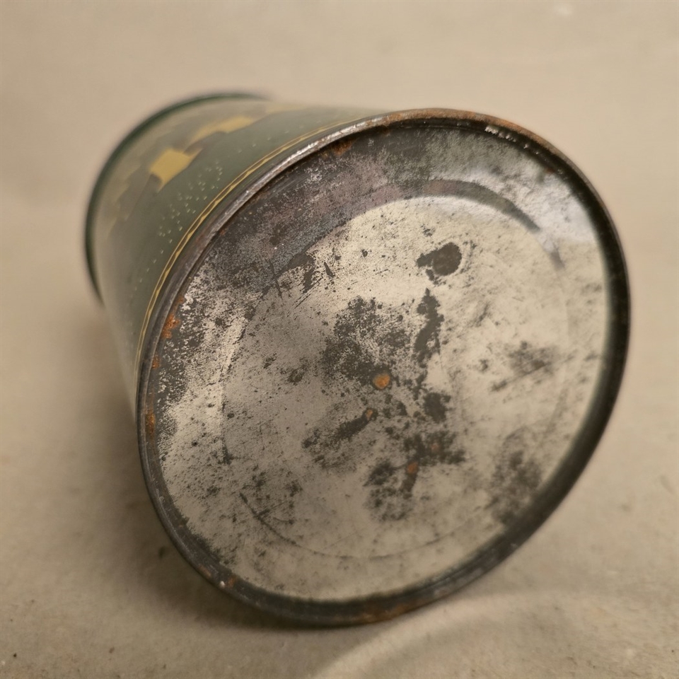 Denne runde metal kaffedåse måler 16,5 cm. i højden og 11,3 cm. i diameter, perfekt til at holde din kaffe frisk og lækker.