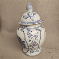 Med en imponerende højde på 23 cm., er denne krukke ikke kun en praktisk genstand til opbevaring, men også en bemærkelsesværdig udsmykning, der vil tiltrække beundrende blikke. Dens låg sikrer, at indholdet forbliver beskyttet og støvfrit, mens det samtidig komplementerer dens æstetiske appel.
