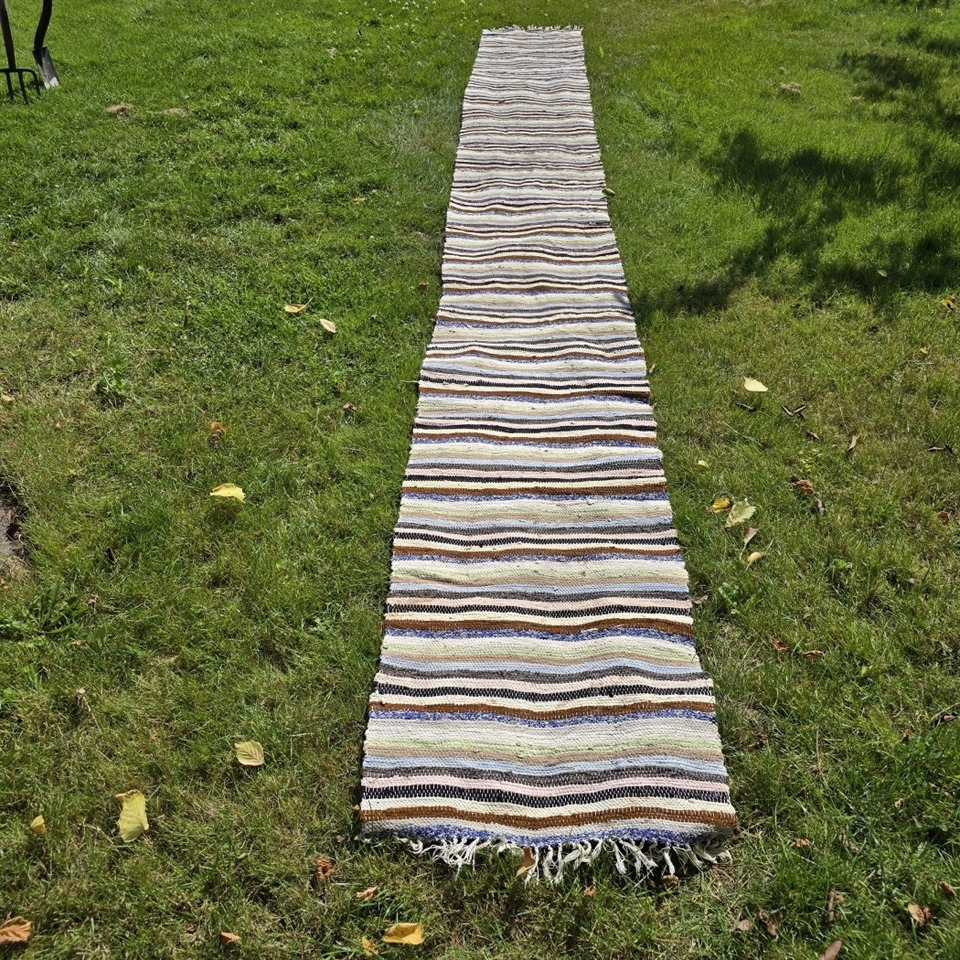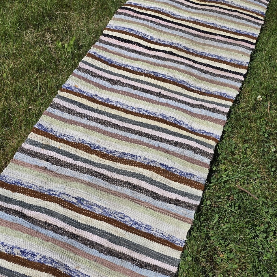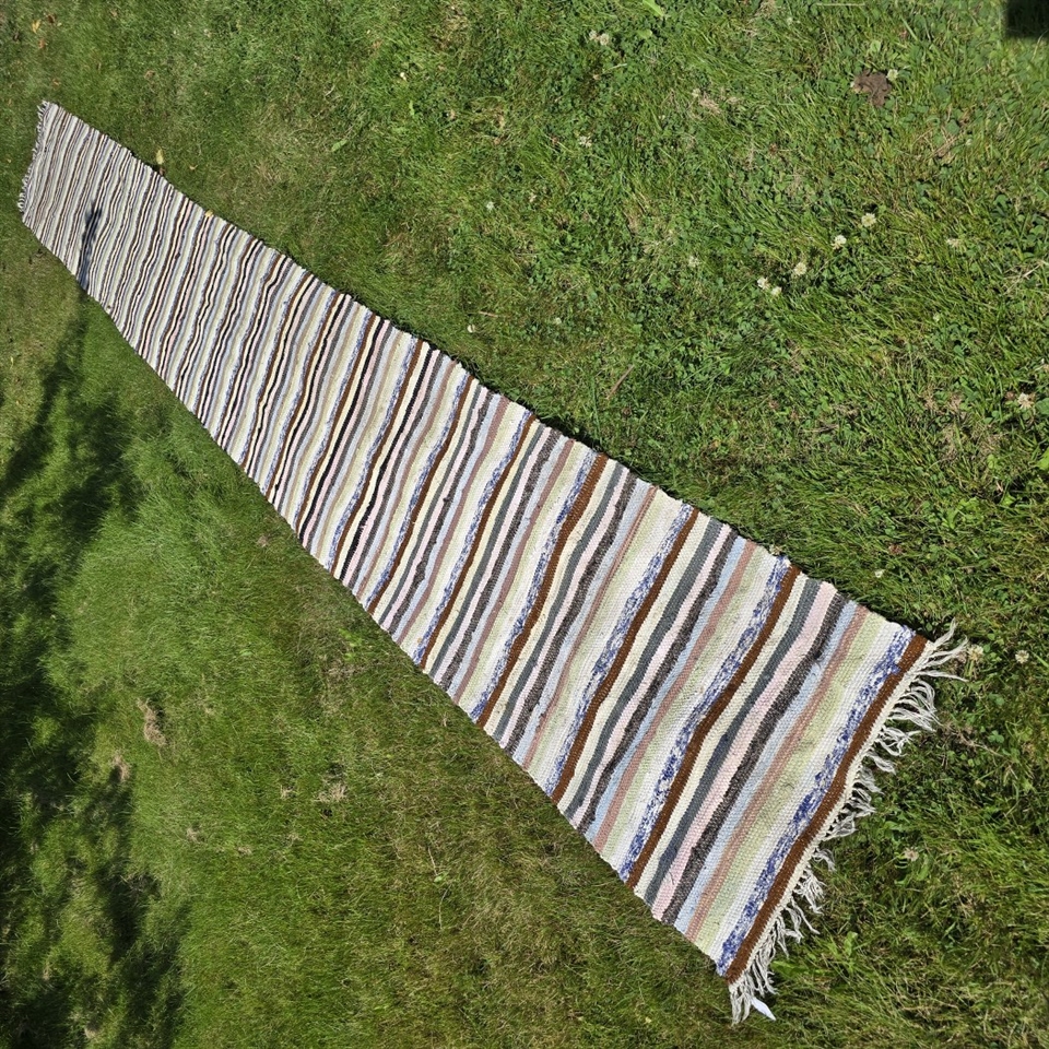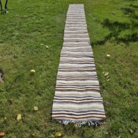 Opdag charmen i autentisk svensk håndværk med vores 'Lang Stribet Løber' – et ægte gammelt svensk kludetæppe, der bringer en hyggelig atmosfære til enhver gang. Dette unikke tæppe måler imponerende 56 x 507 cm. og er perfekt til at tilføje en følelse af varme og historie til dit hjem.