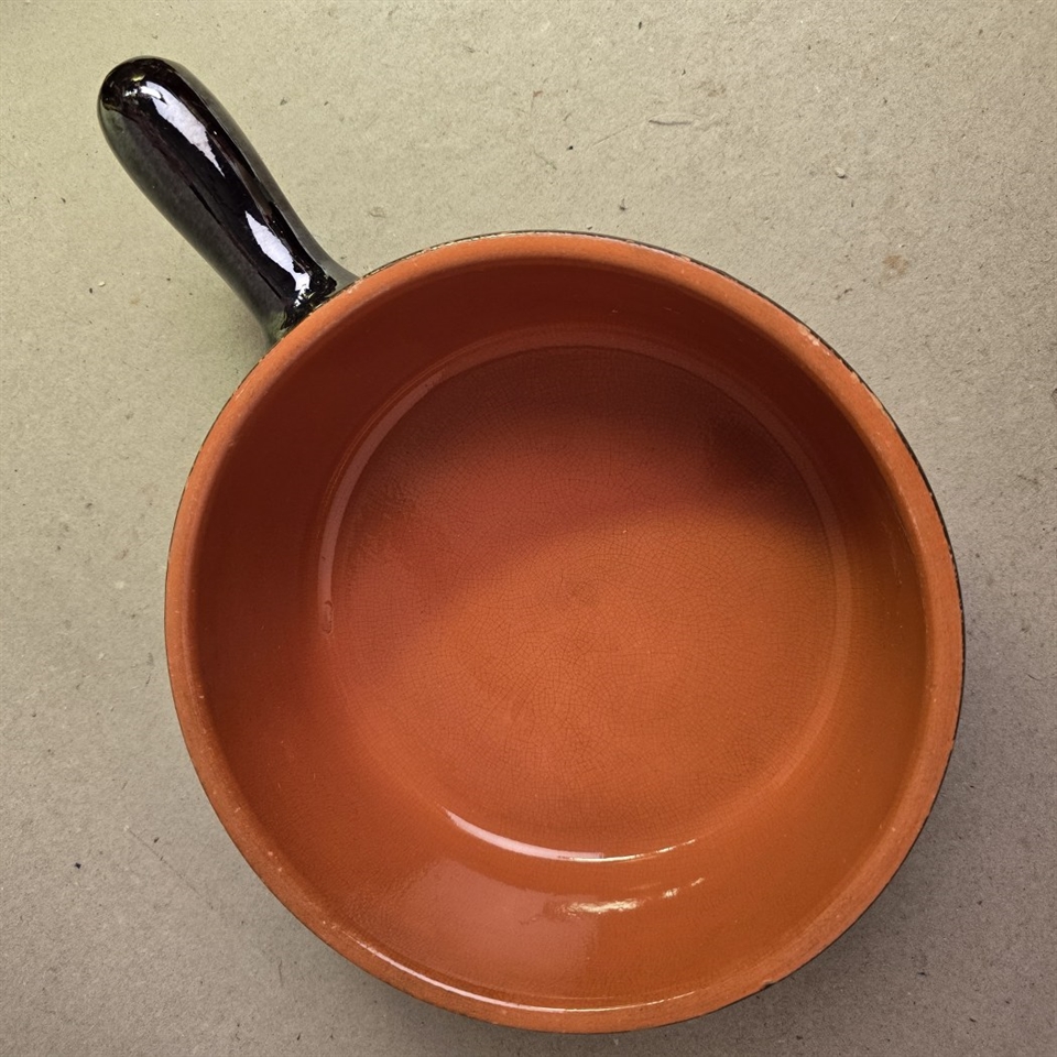 Serveringsfadet måler 8 cm. i højden og 20,7 cm. i diameter, hvilket gør det ideelt til en række forskellige serveringsbehov, fra appetitvækkere til hovedretter. Hanken sikrer nem transport fra køkken til bord, mens den robuste lerstruktur garanterer lang holdbarhed.