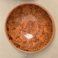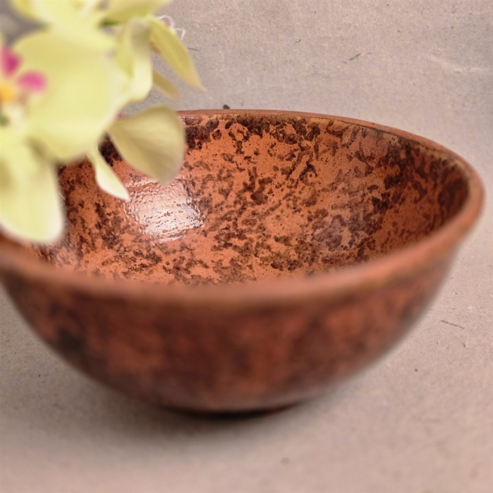 Denne unikke lerskål er fremstillet med passion og præcision, og dens smukke brunmelerede glasur fanger øjet og varmer sjælen.
