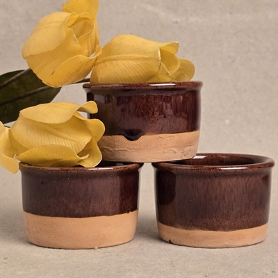 Giv dit køkken eller spisestue med et strejf af retro charme med vores 'Lerskåle, små retro skåle med mørkebrun glasur'.