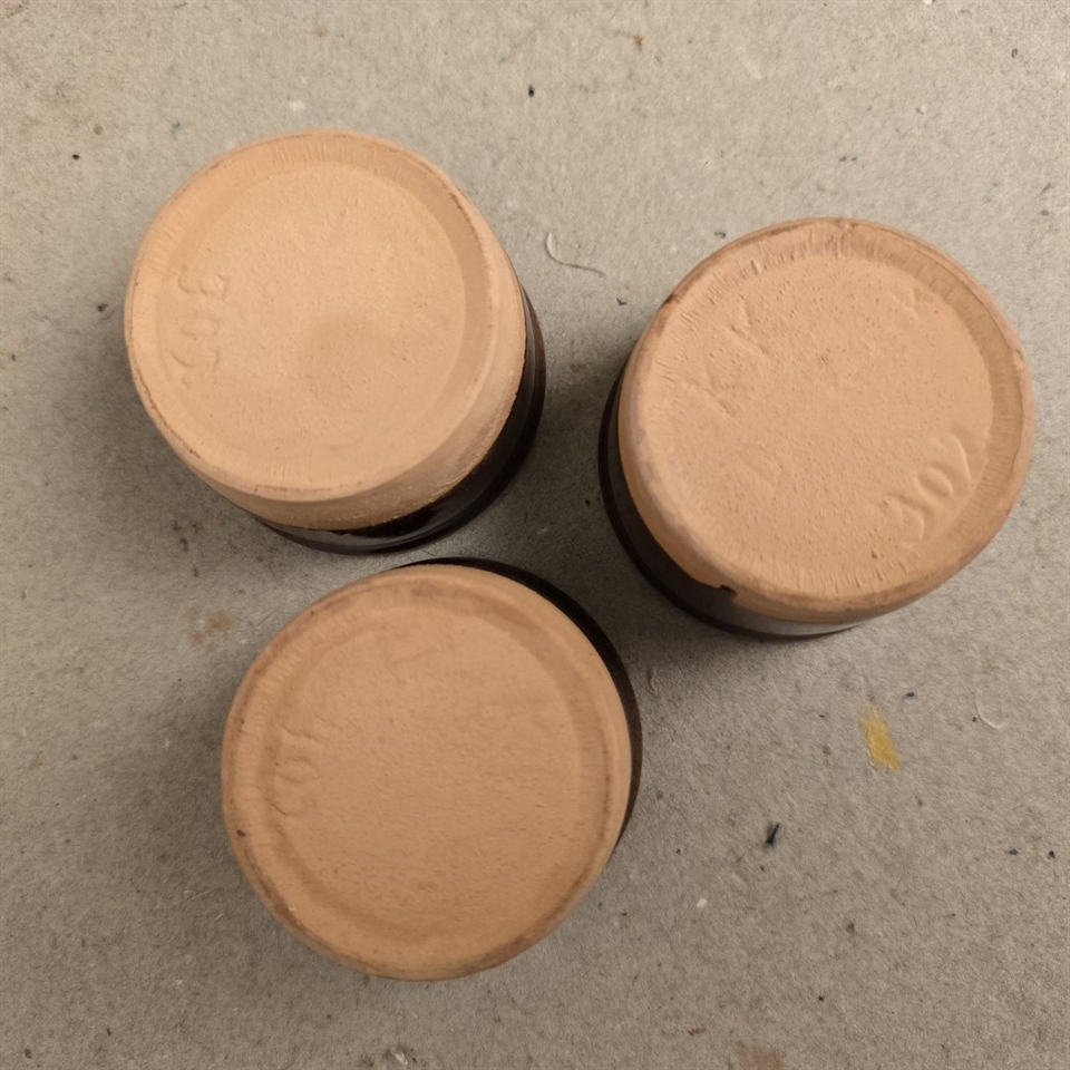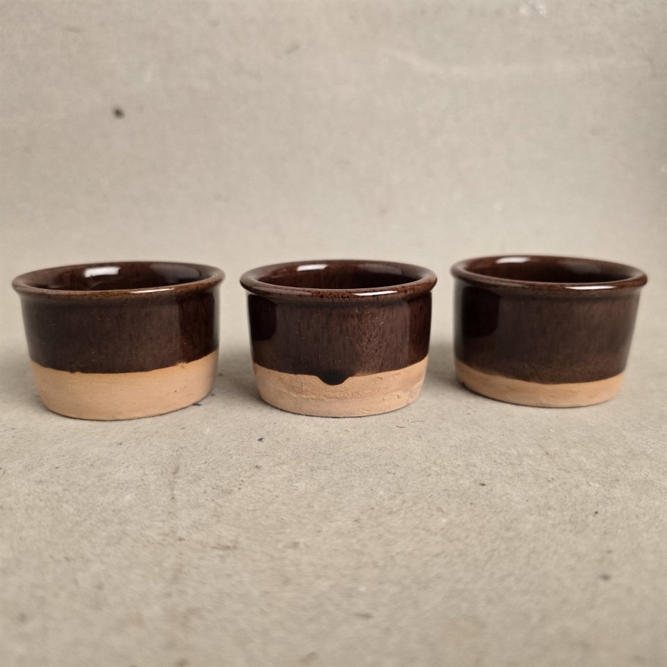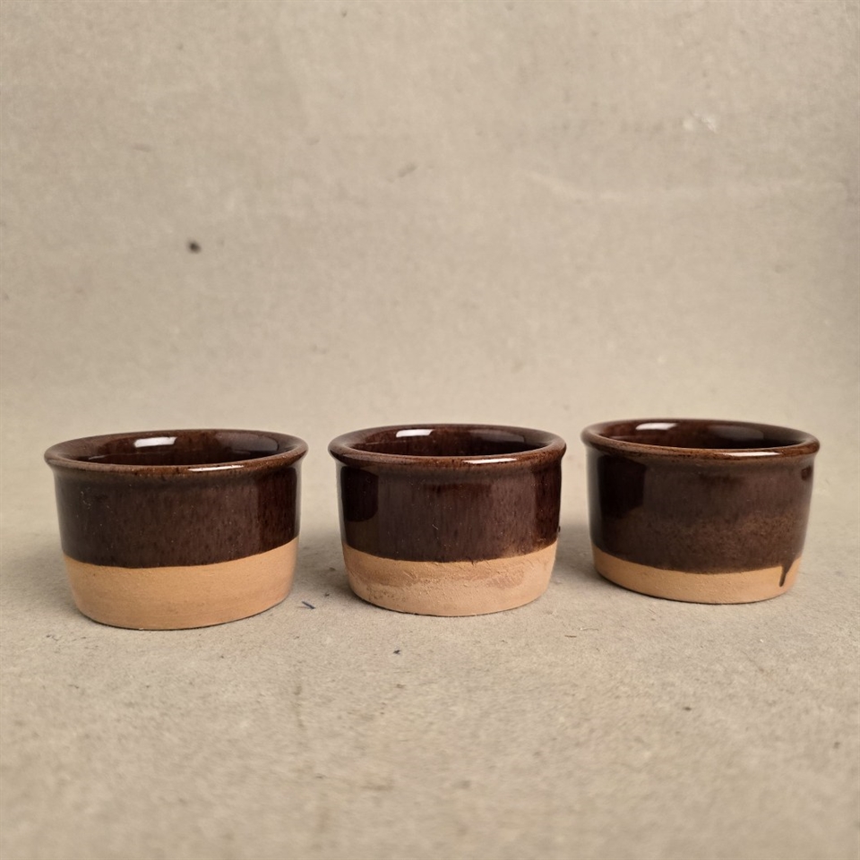 Dette sæt består af 3 smukt håndlavede keramikskåle, hver med en diameter på 6 cm. og en højde på 3,8 cm.