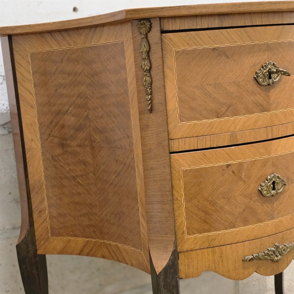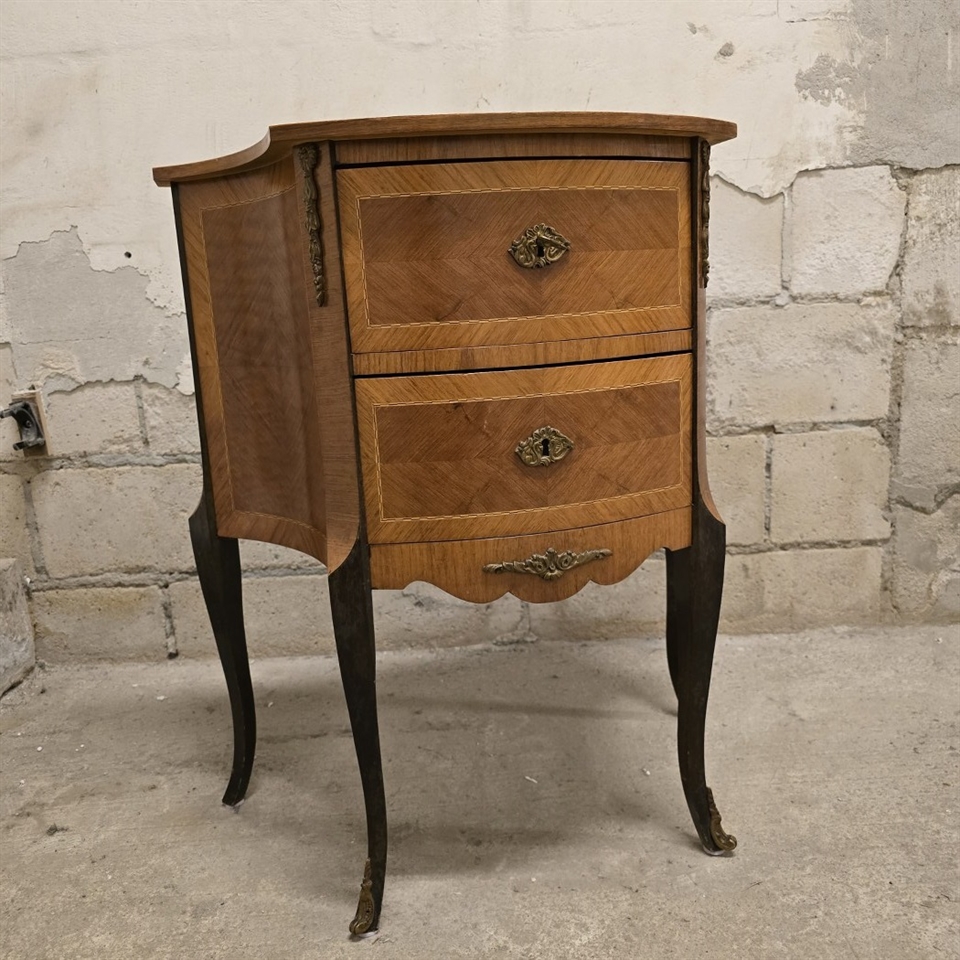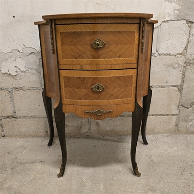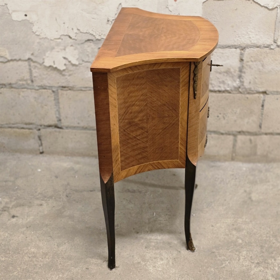Opdag elegance og tidløs charme med vores "Lille gammel entre kommode på høje ben, 2 skuffer".