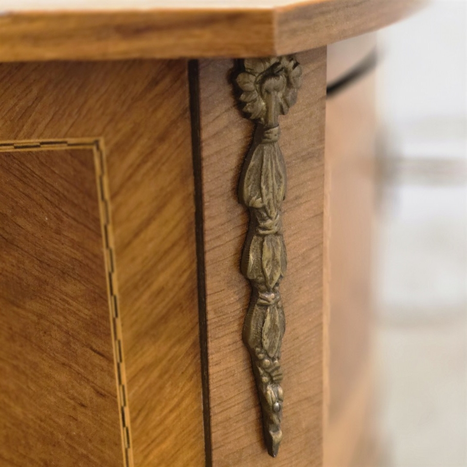 Dette ekstraordinære møbelstykke er en hyldest til klassisk finesse og raffinement, perfekt designet til at berige din entré eller ethvert lille rum med sin imponerende tilstedeværelse.