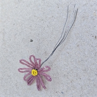 Opdag den charmerende skønhed i vores "Lille lilla perleblomst med gul midte" – et mesterværk af gammeldags fransk håndværk, der tilføjer en unik elegance til ethvert rum.
