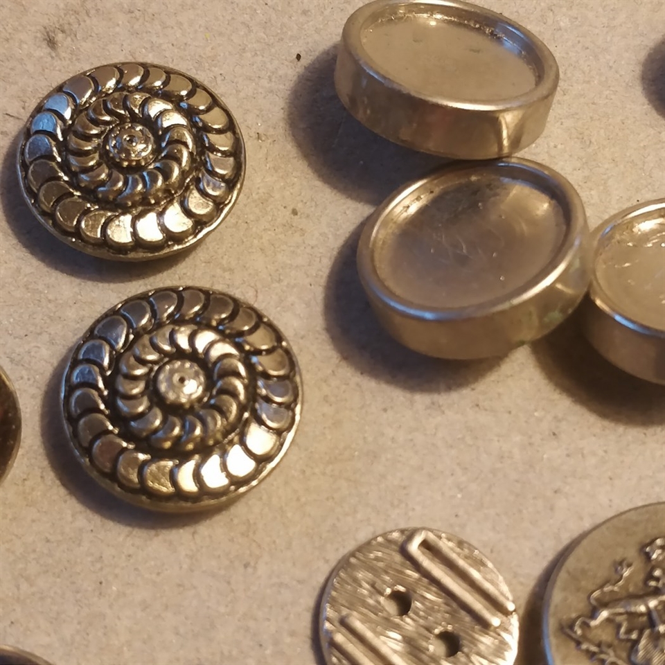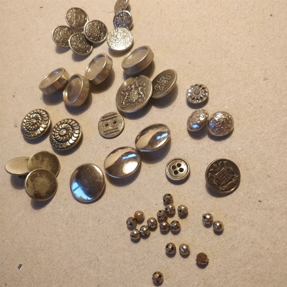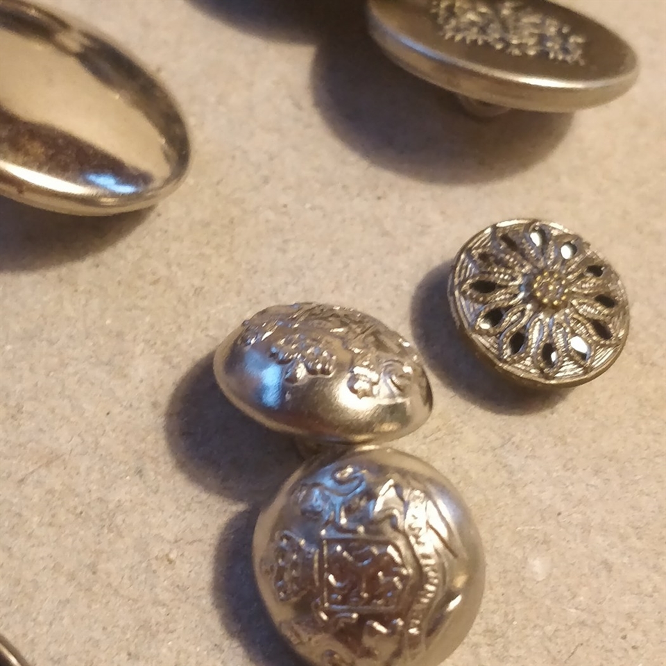Opdag charmen i vores unikke lot af gamle sølvfarvede knapper!