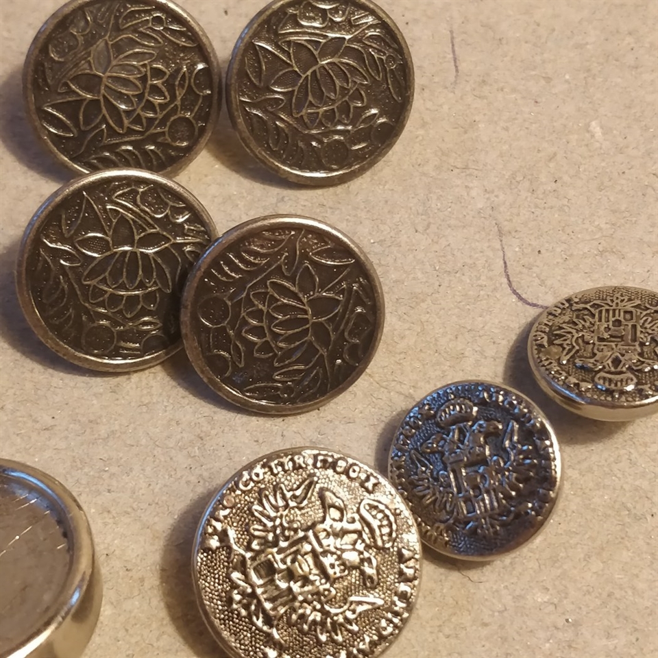 Dette særlige udvalg består hovedsageligt af metal knapper, der kommer i forskellige størrelser fra 4 til 27 mm. i diameter. Hver knap er nøje udvalgt for at tilføje et strejf af vintage elegance til dit håndarbejde eller modeprojekter.