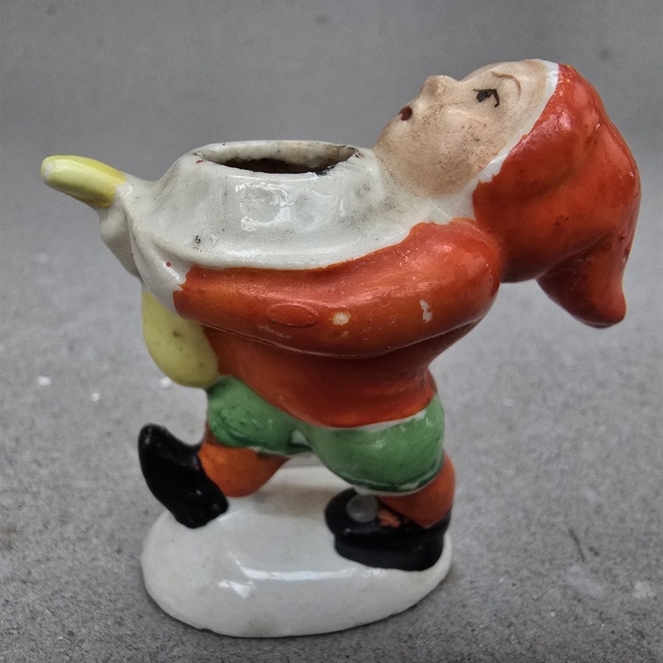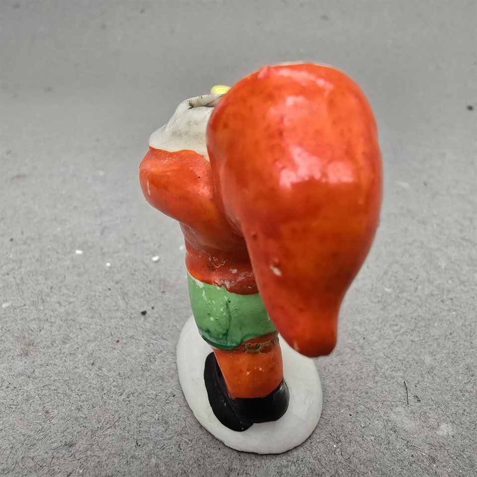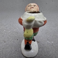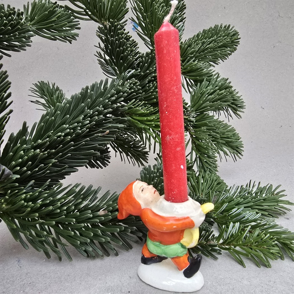 Denne bedårende lille nisse, klædt i sin klassiske røde hue og jakke med grønne bukser, går hyggeligt med en grødskål, der lyser op med et juletræslys. Lavet af porcelæn, står denne charmerende figur med 5,5 cm. i højden, perfekt til at sprede juleglæde på enhver hylde eller i ethvert vindue.