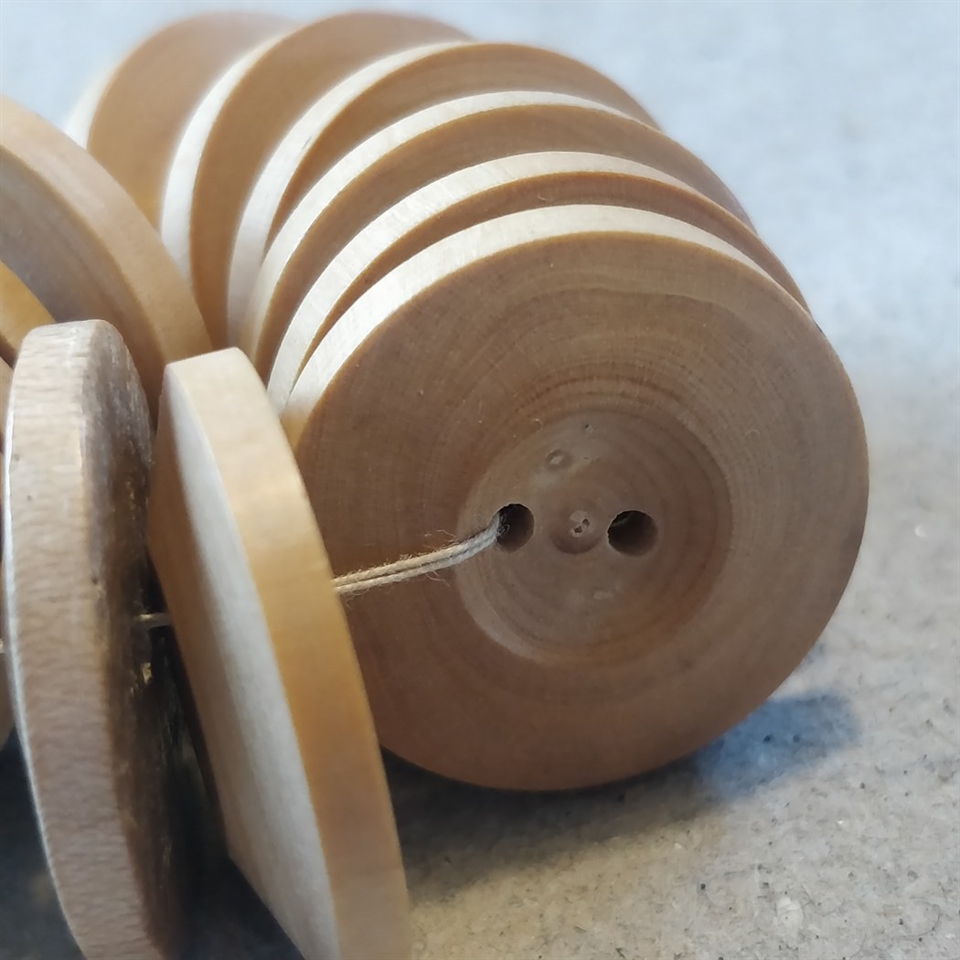 Brug disse retro knapper til dit håndarbejde eller tøj, 'Lyse vintage træknapper, enkle med fordybet midte'.