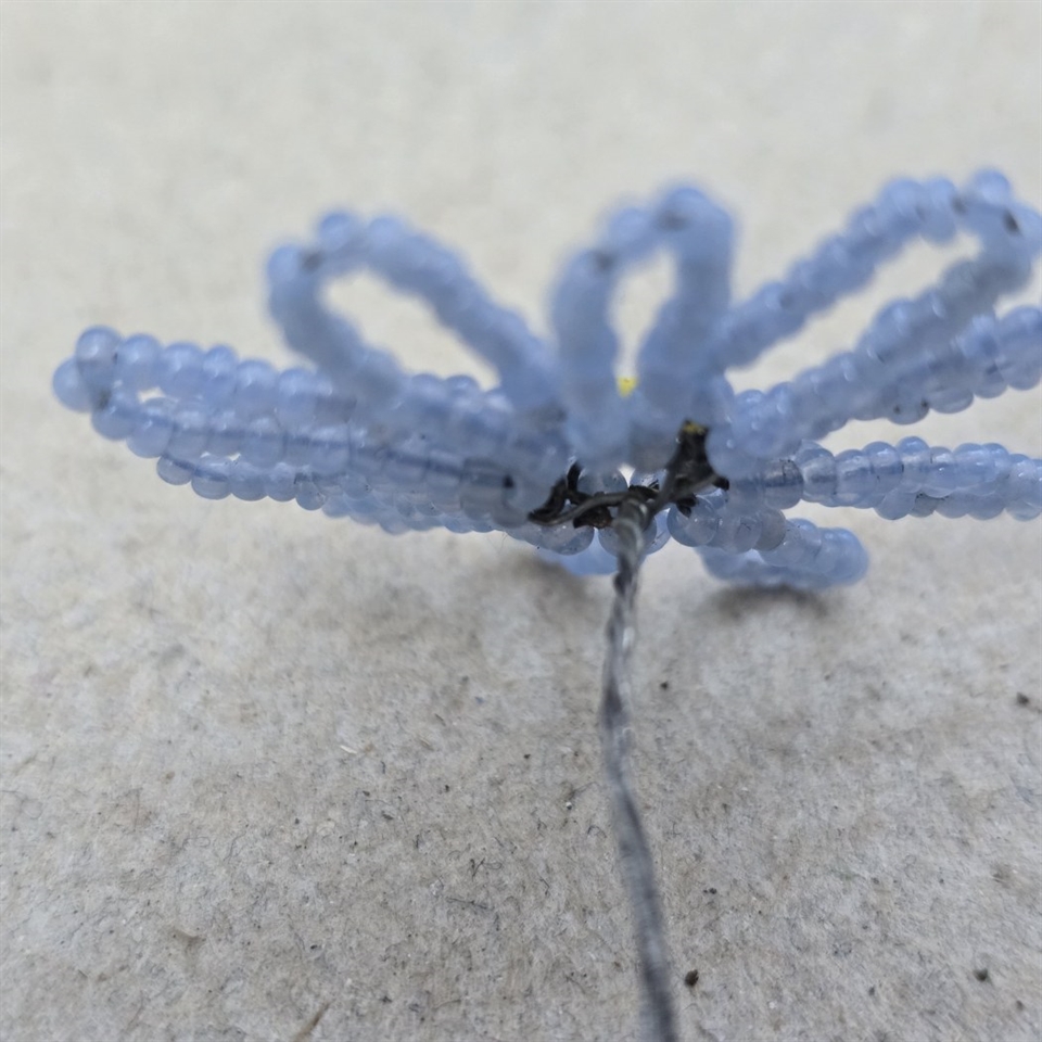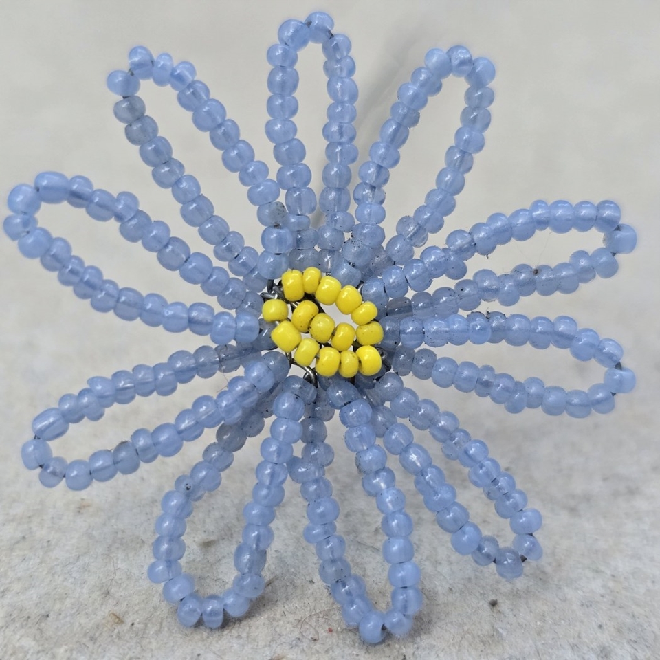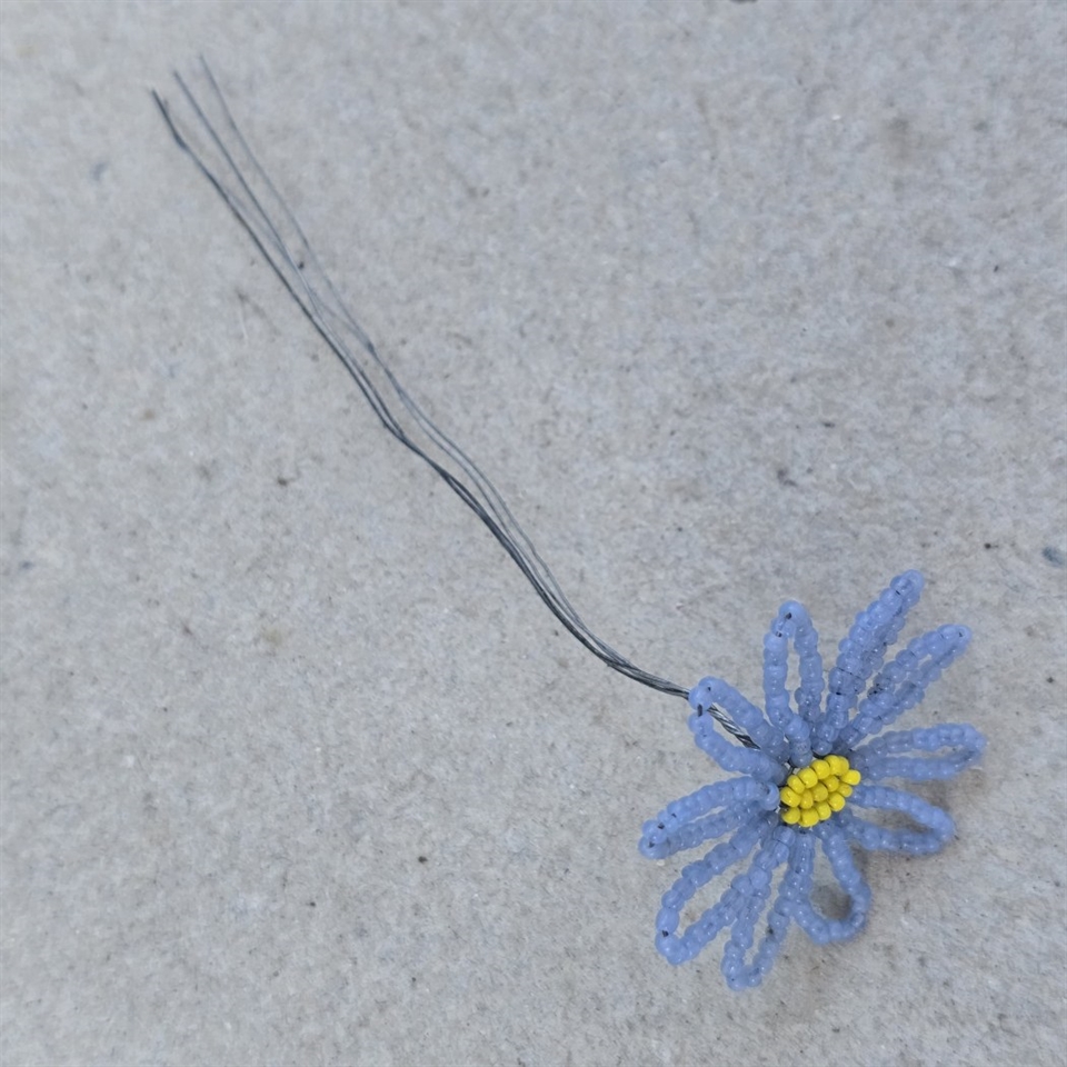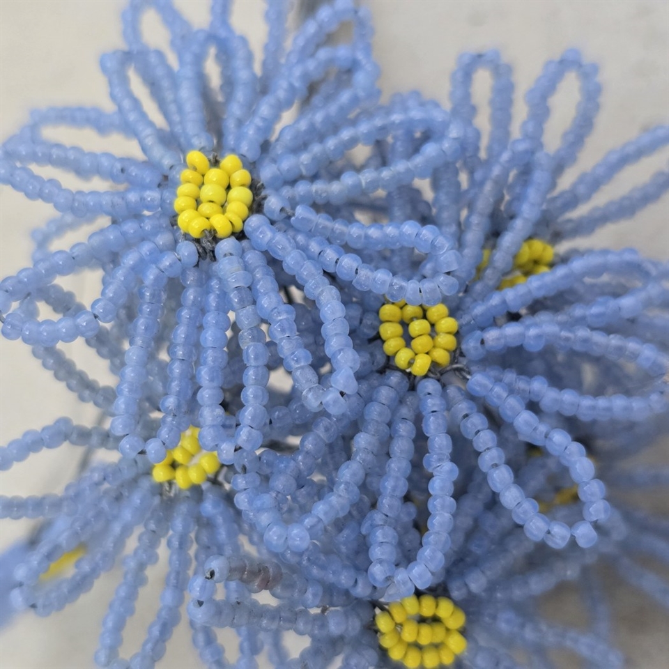 Opdag skønheden i håndlavet kunst med vores 'Lyseblå gammel french beaded flower, glasperleblomst'.