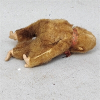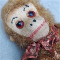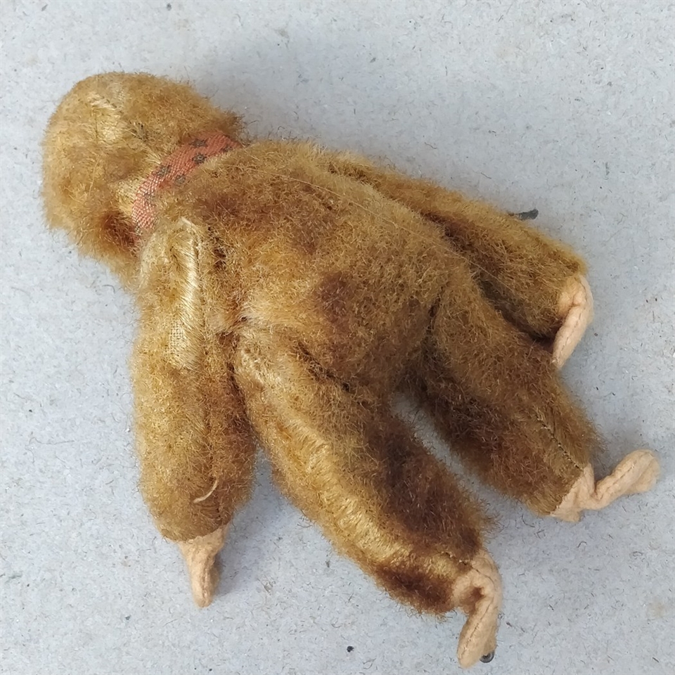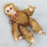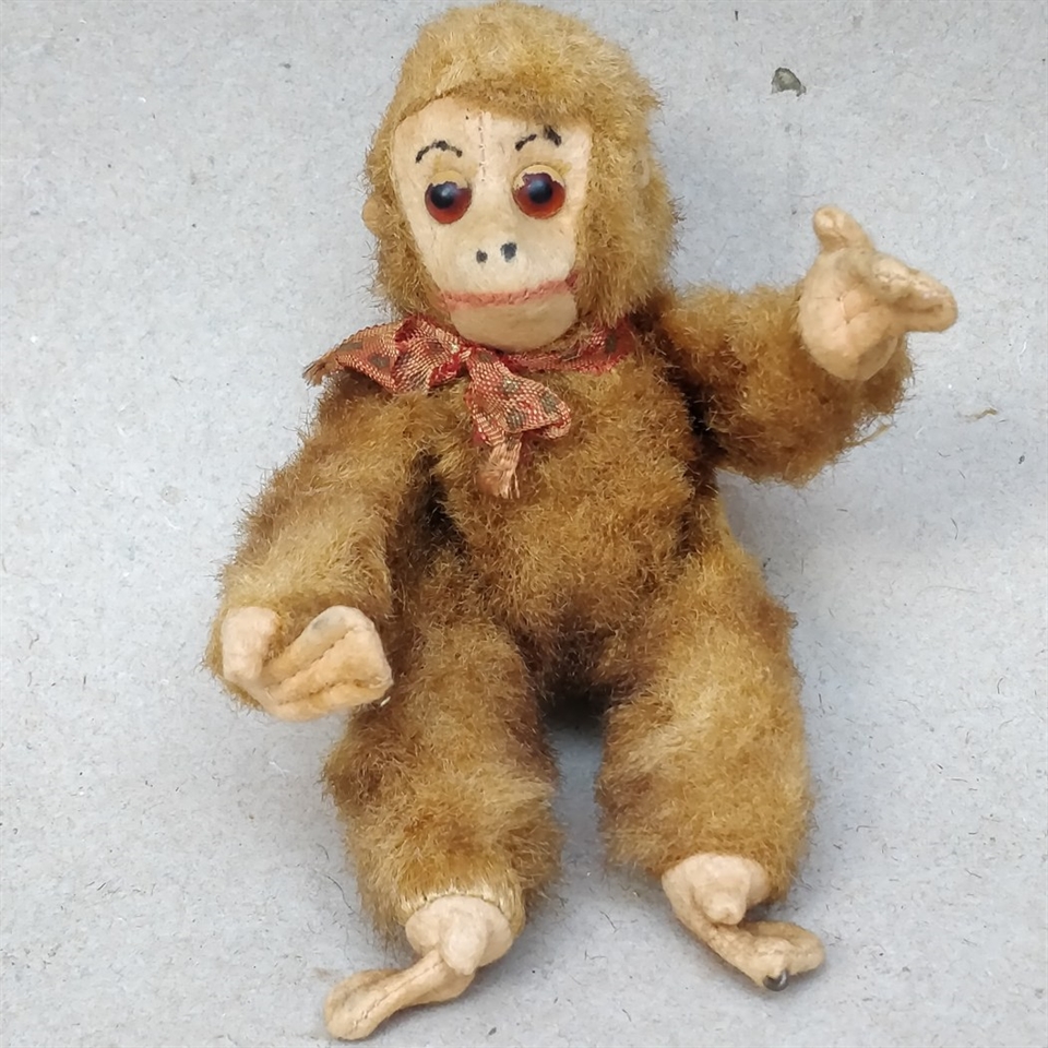 Charmen ved vintage legetøj kan opleves med denne søde lysebrun kramme abe!
