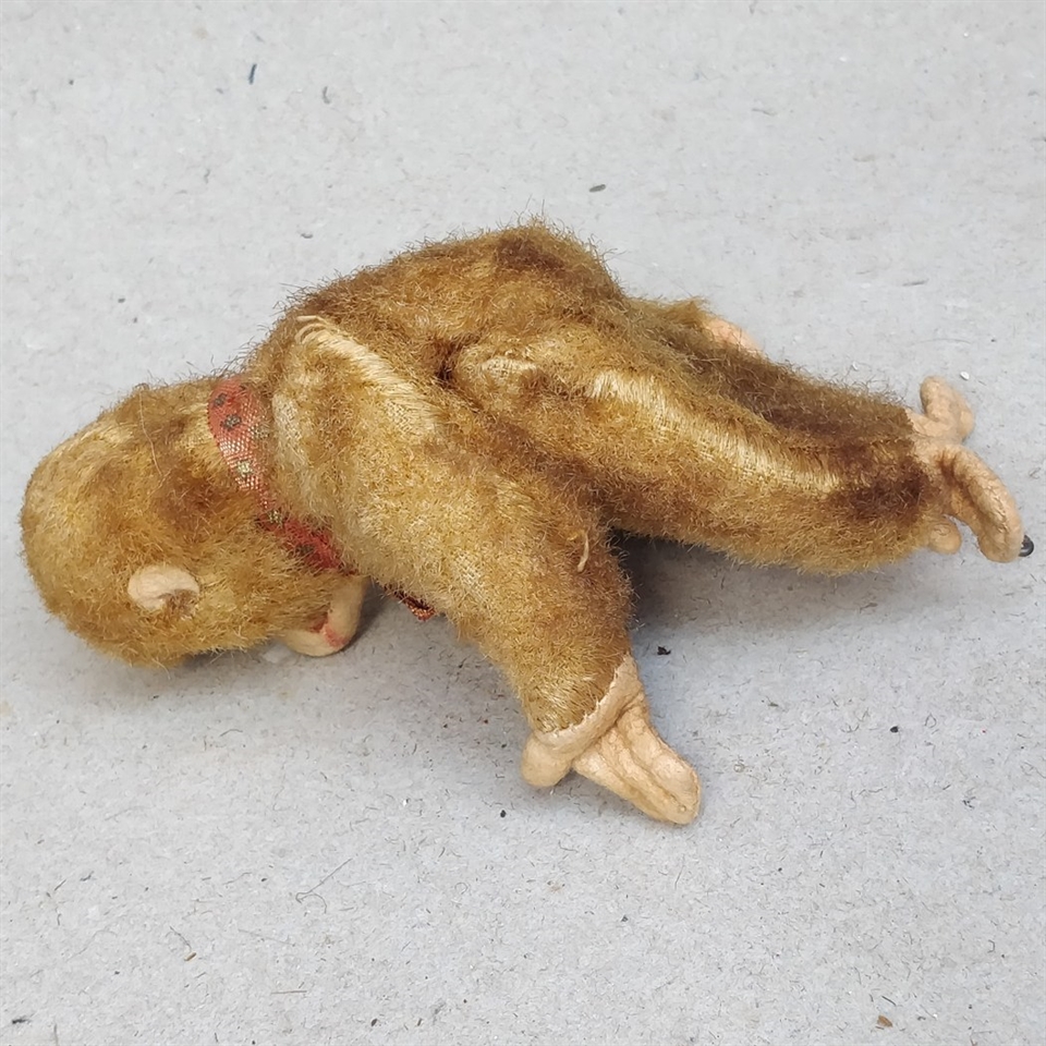 Denne kærlige abe har en sløjfe om halsen og er udstyret med bevægelige arme og ben, så den kan indtage forskellige sjove stillinger.