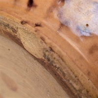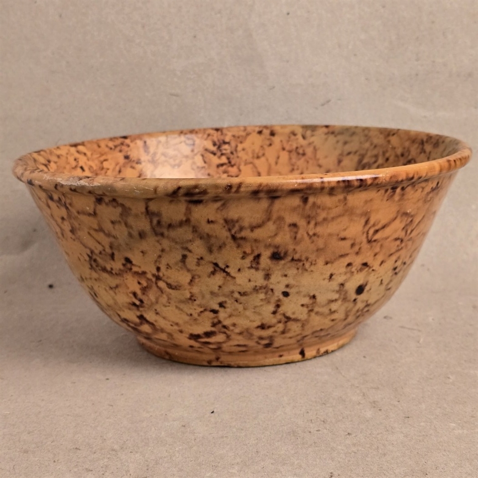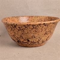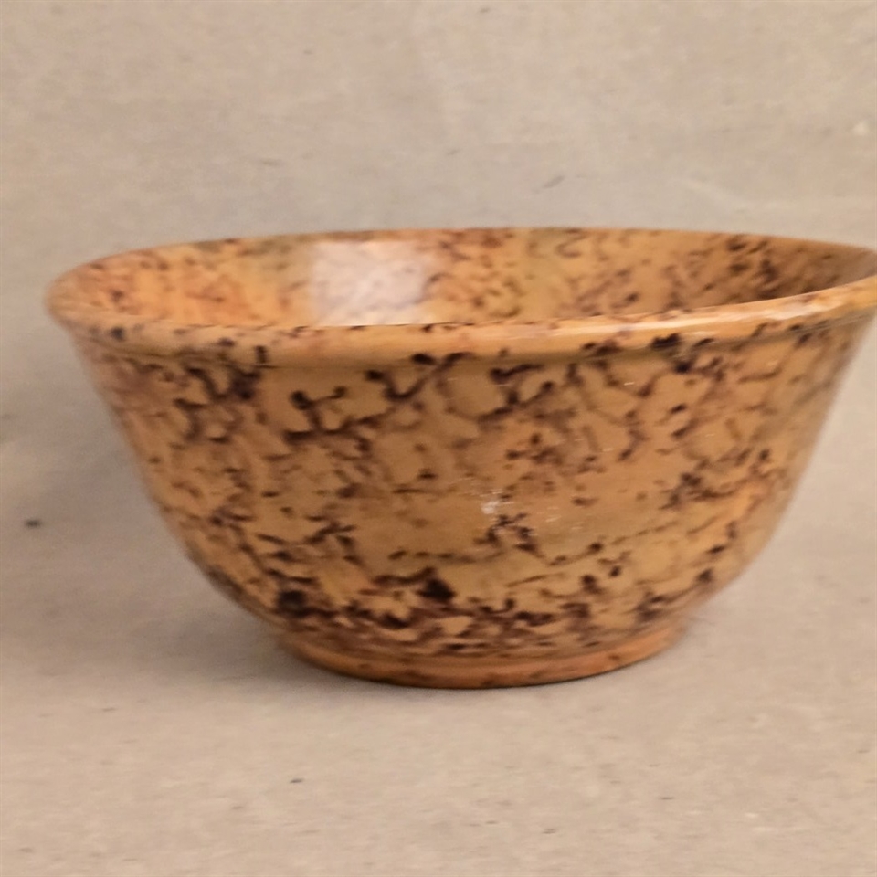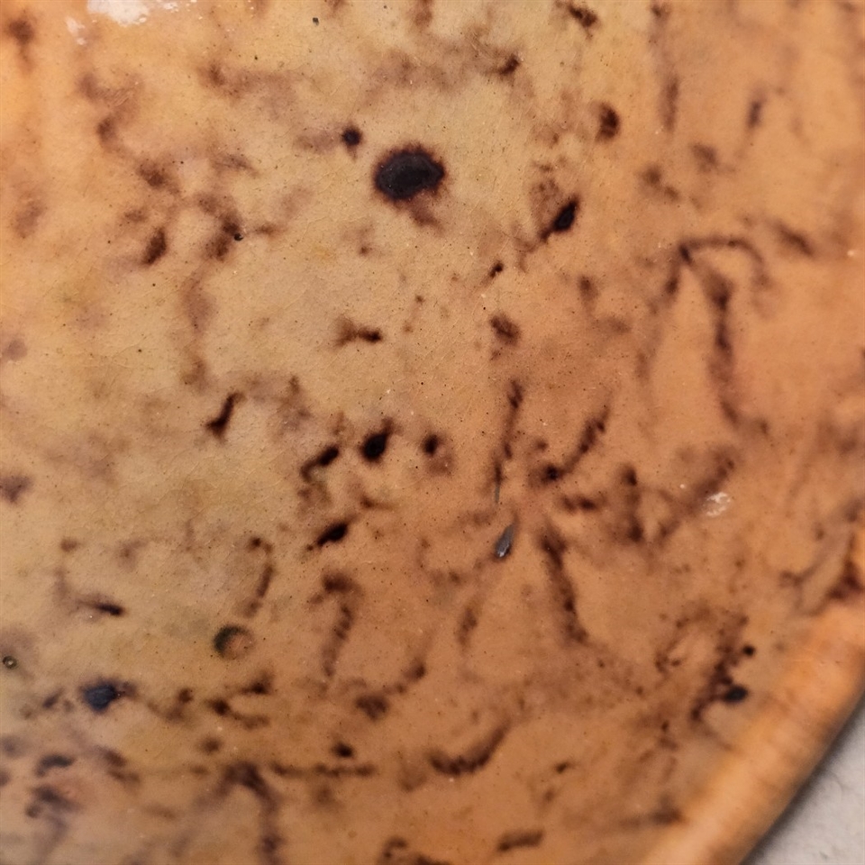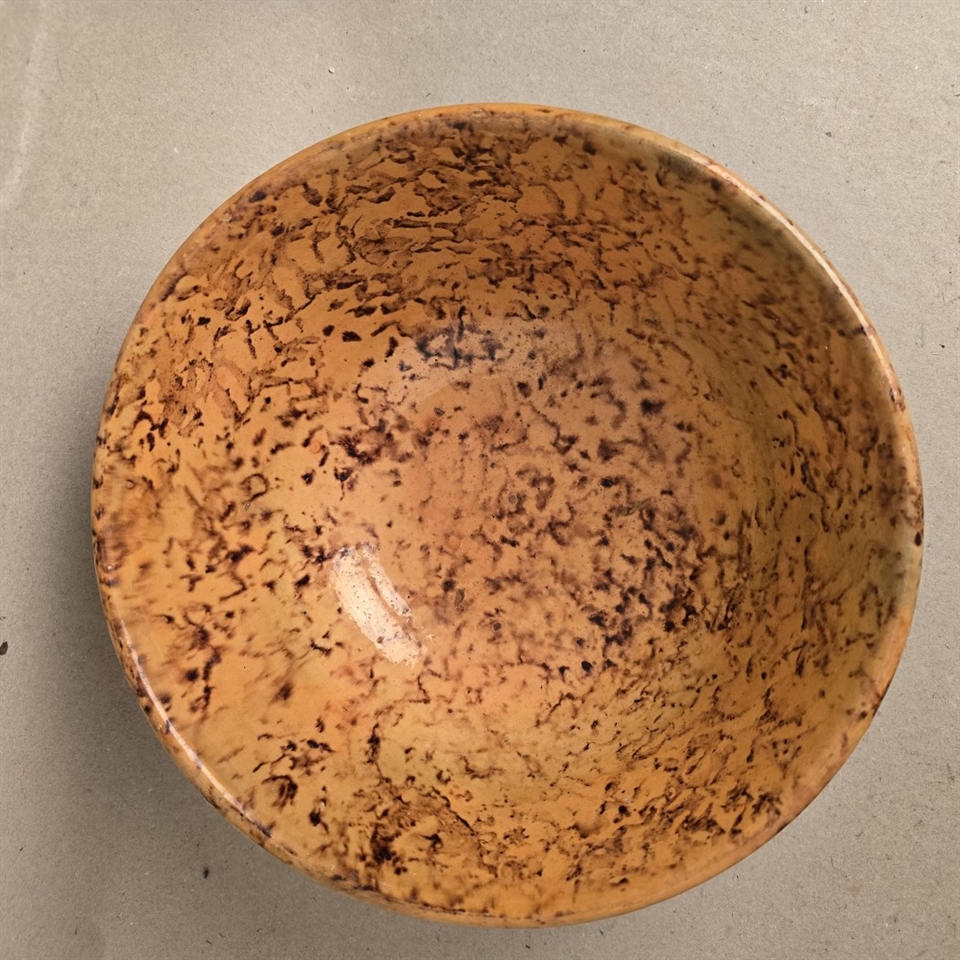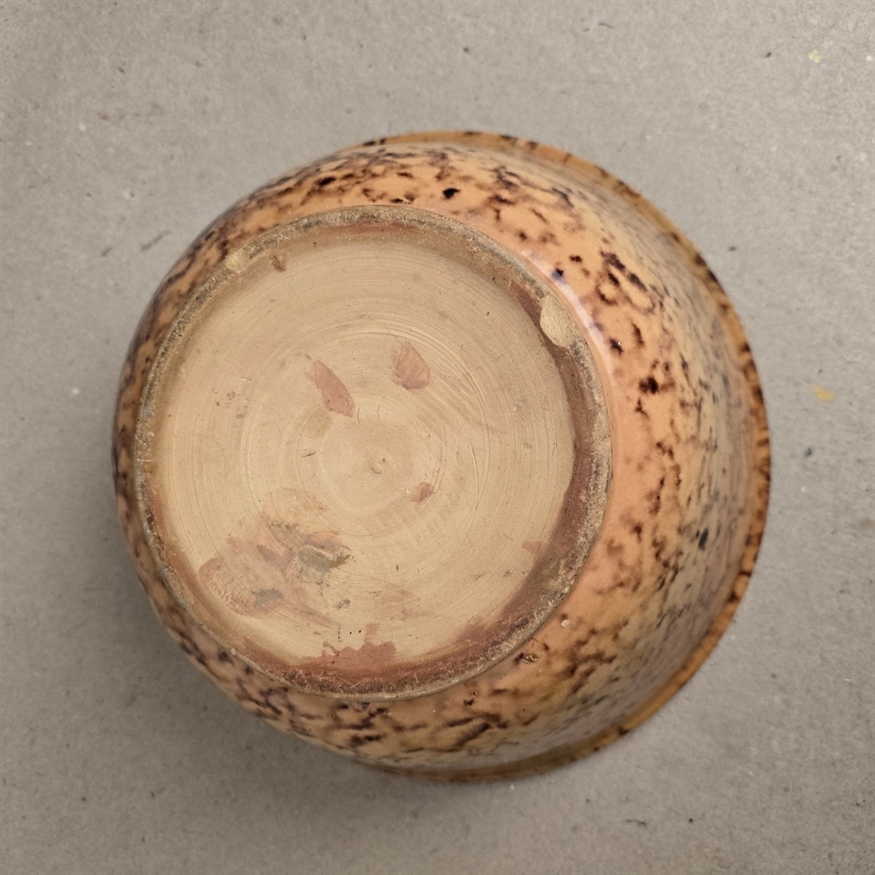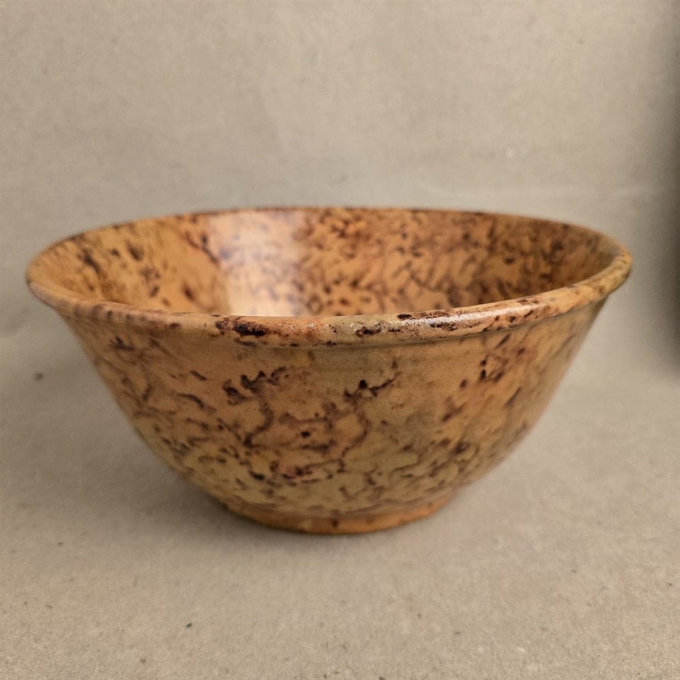 Produktnavn: Lysebrun meleret glaseret antik keramik skål, gammel grødskål.
