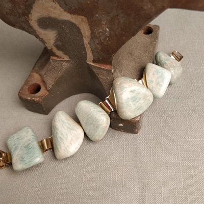 Armbånd med marmorerede sten i lysegrønt og hvidt.