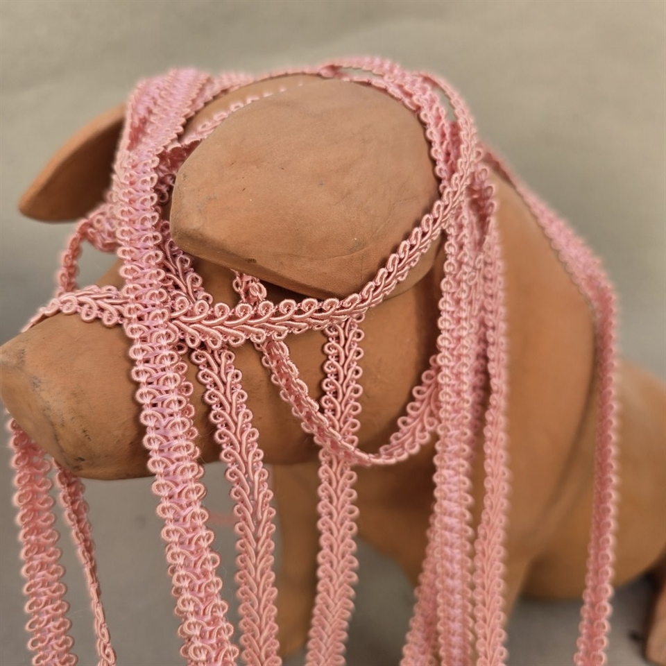 Opgrader dit håndværksprojekt med vores autentiske italienske lyserøde possementbånd, som er perfekt til at tilføje en unik og elegant detalje til dine kreationer.