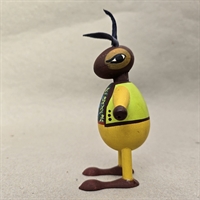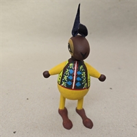 Denne særprægede træfigur er omhyggeligt håndlavet og designet af den anerkendte kunstner Mogens Eigenbrod, kendt for sin evne til at skabe livlige og karakterfulde påskefigurer.