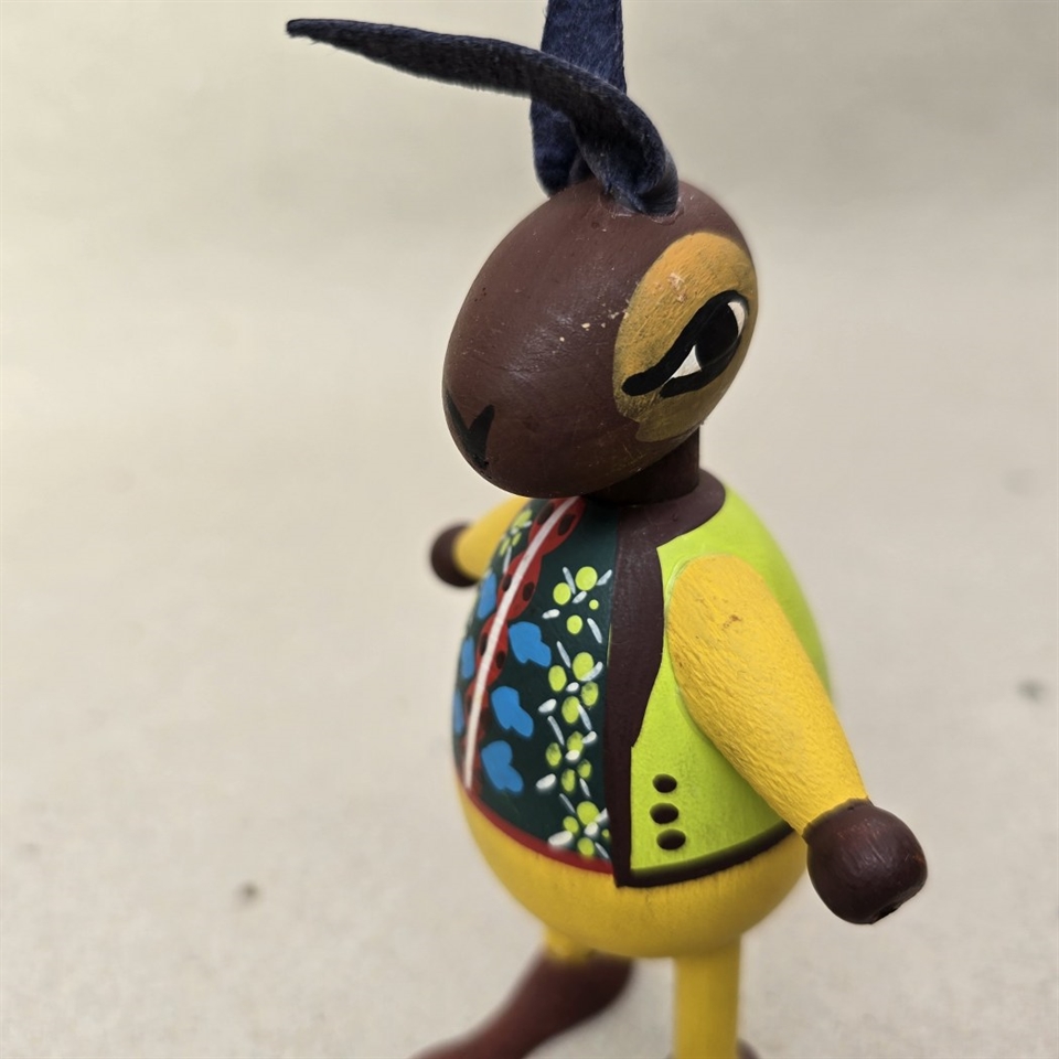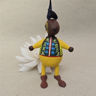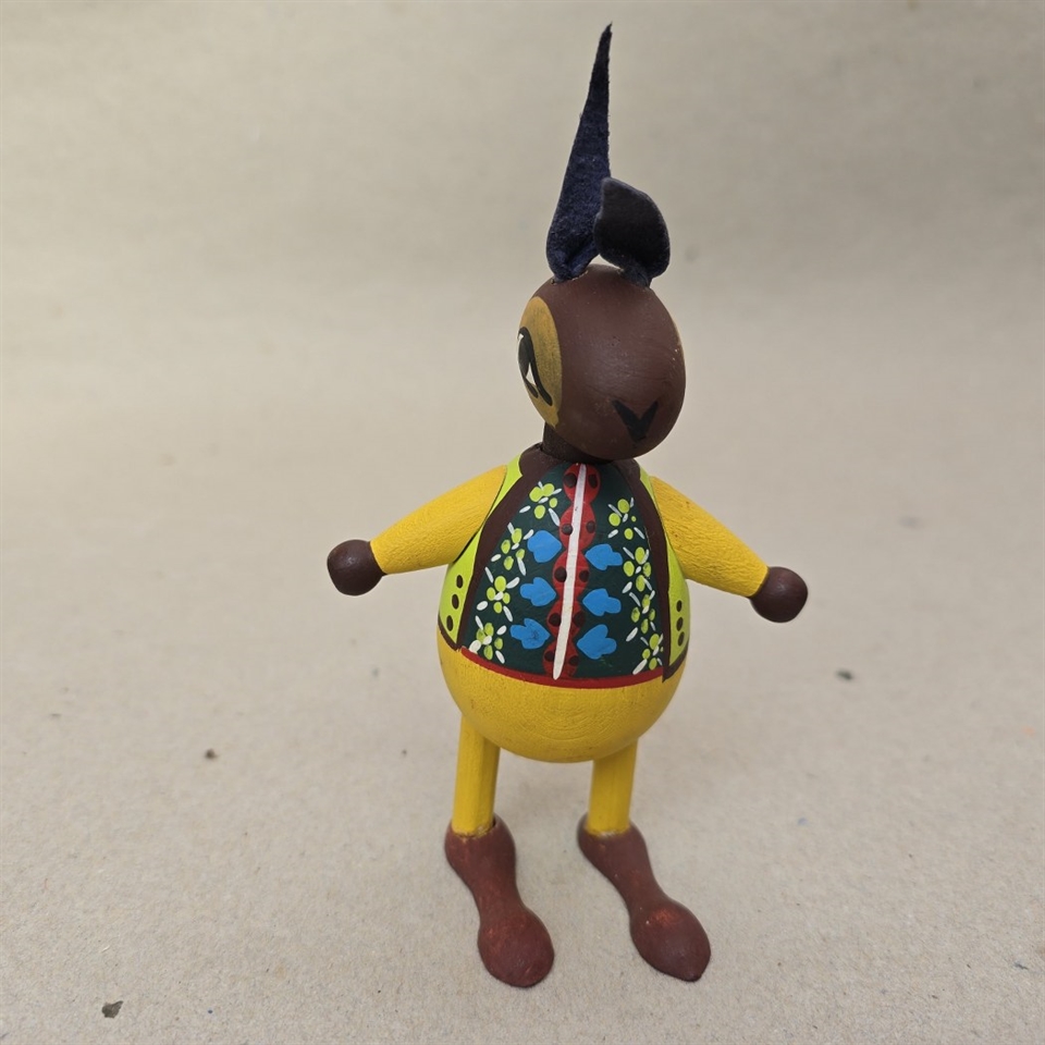 Denne dekorative figur er ikke kun en påskepynt, men også et stykke kunsthåndværk, der vidner om traditionel håndværksmæssig finesse.
